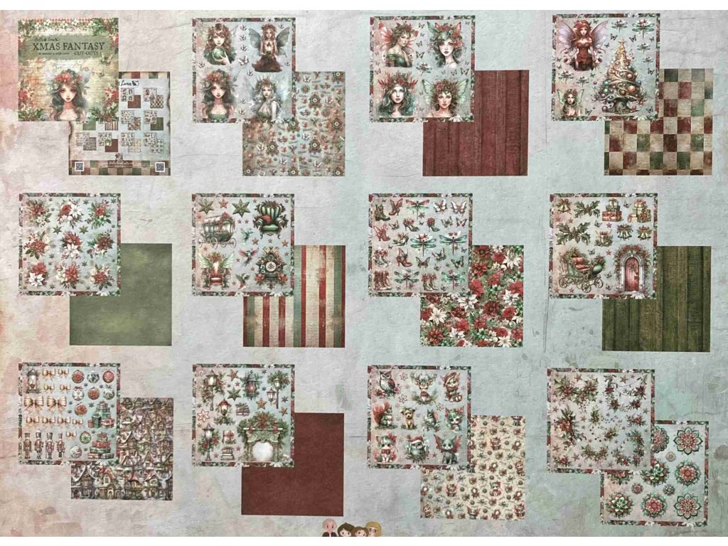 Sada papírů Bellaluna XMAS FANTASY Vánoční sen výřezy a doplňky 20x20cm 12ks