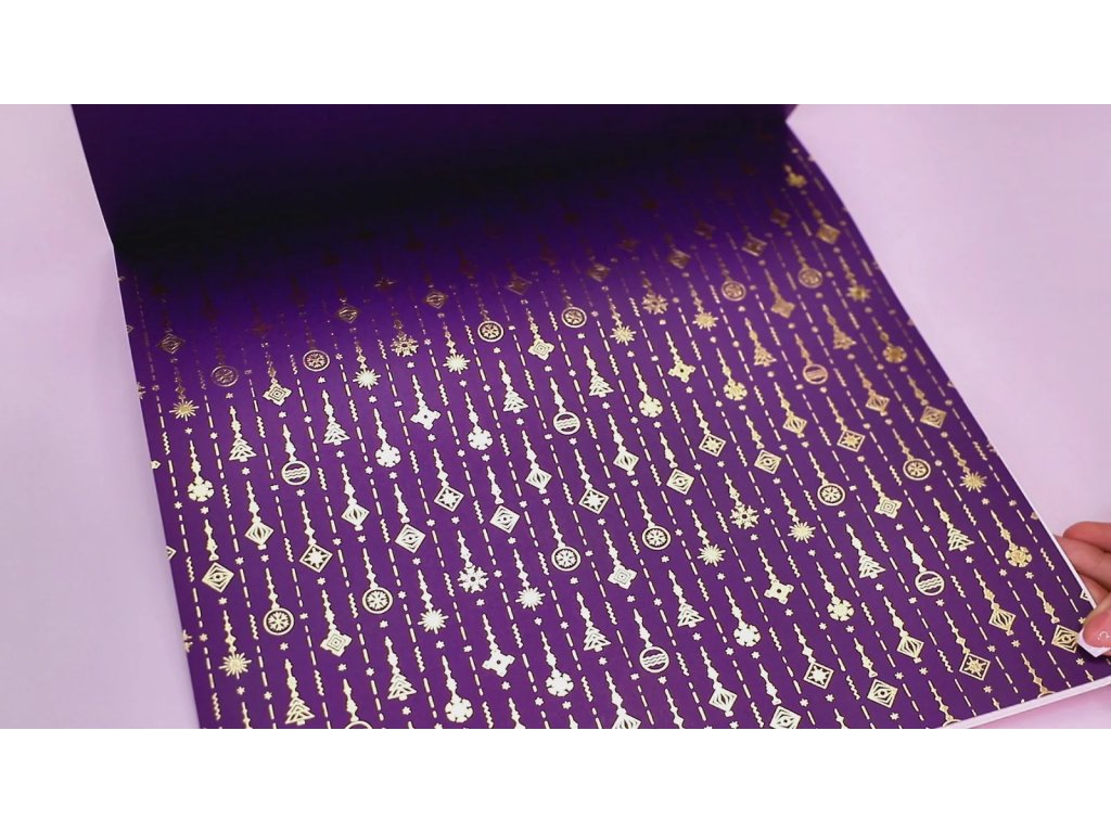 - Každý blok obsahuje 36 oboustranných listů s vintage vánočními motivy, jako jsou klasický Santa Claus, sobi, sníh, města a vesnice.