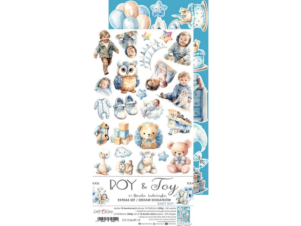 Sada papírů Craft O´Clock Baby Boy – Boy & Toy chlapec a hračky 30x15cm