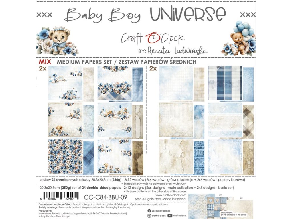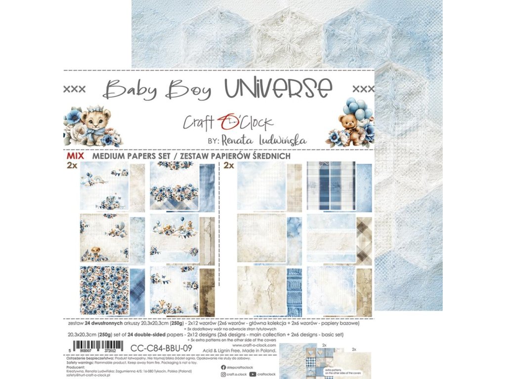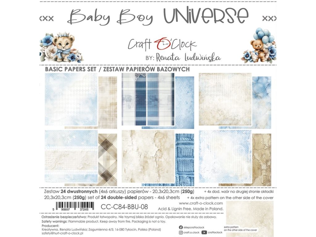 Sada papírů Craft O´Clock Baby Boy Universe velký mix 20x20cm