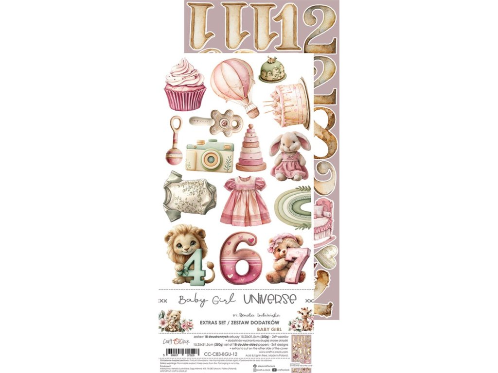 Sada papírů Craft O´Clock Baby Girl Universe holčičí svět 30x15cm