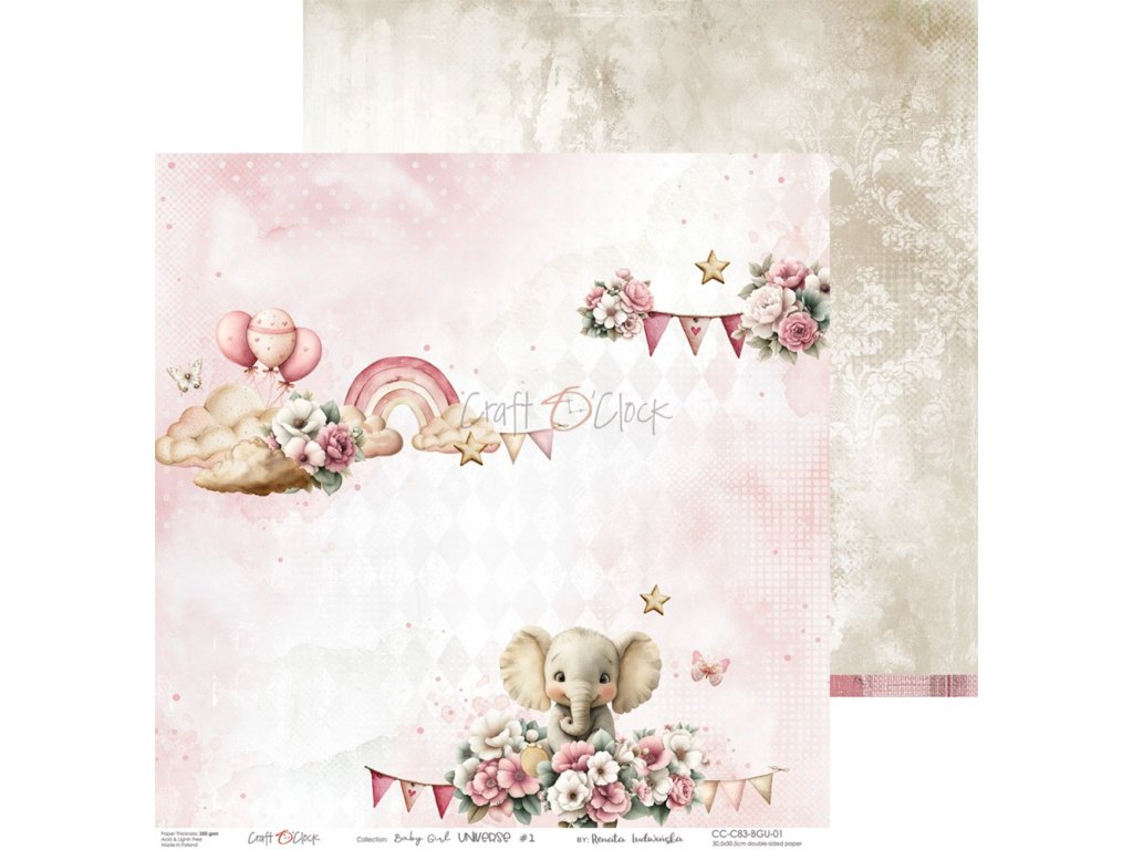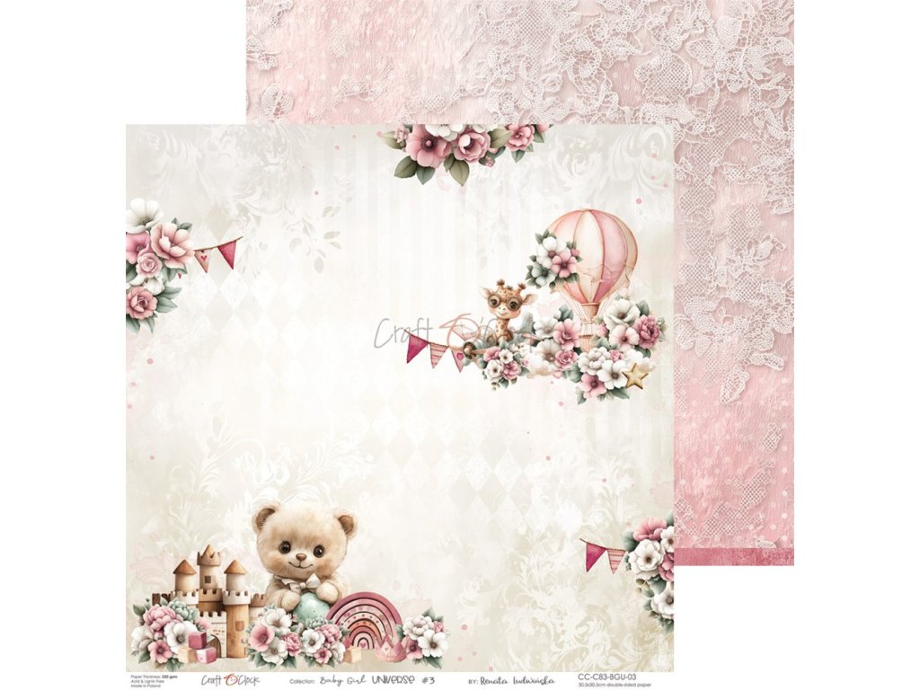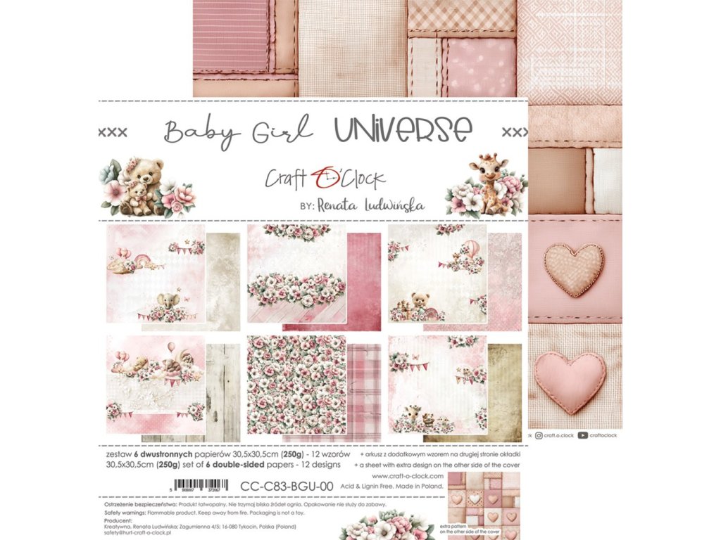 Sada papírů Craft O´Clock Baby Girl Universe holčičí svět 30x30cm