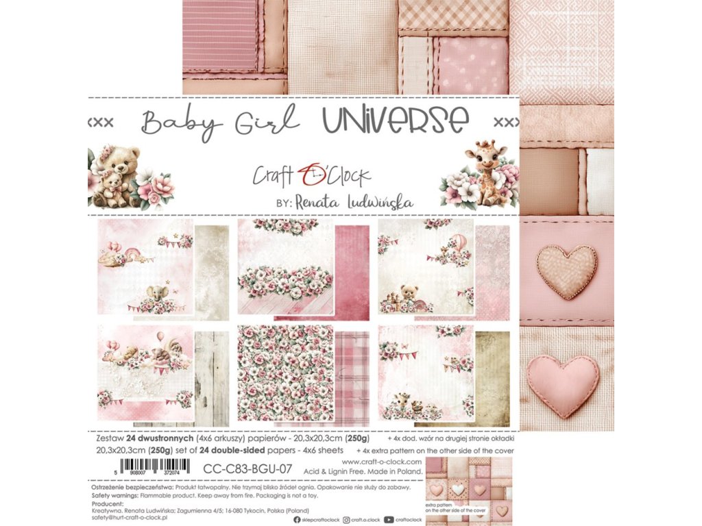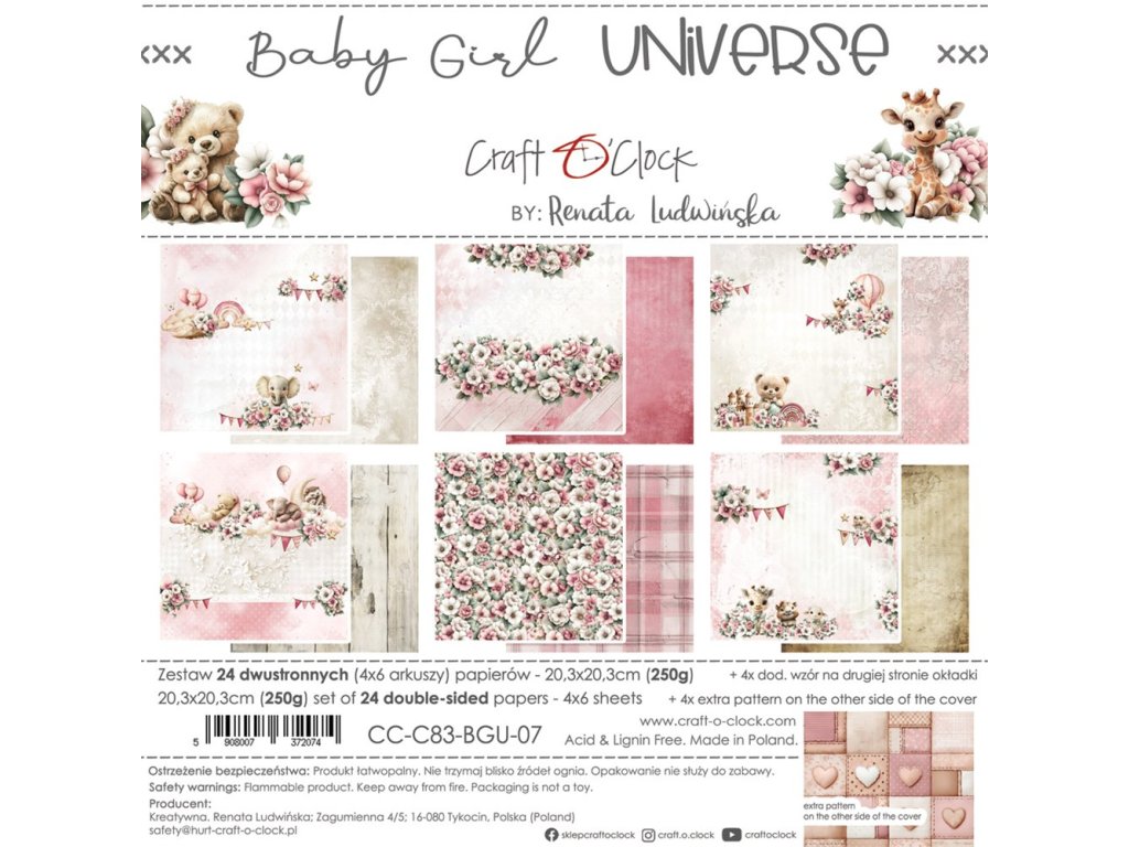Sada papírů Craft O´Clock Baby Girl Universe velký mix 20x20cm