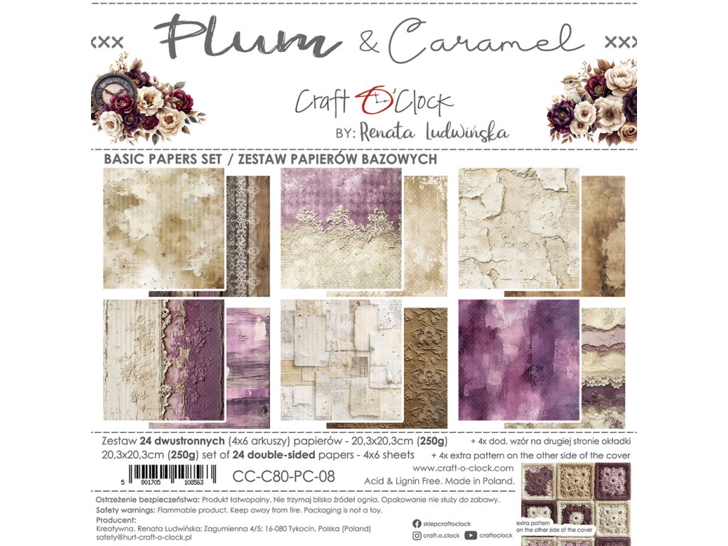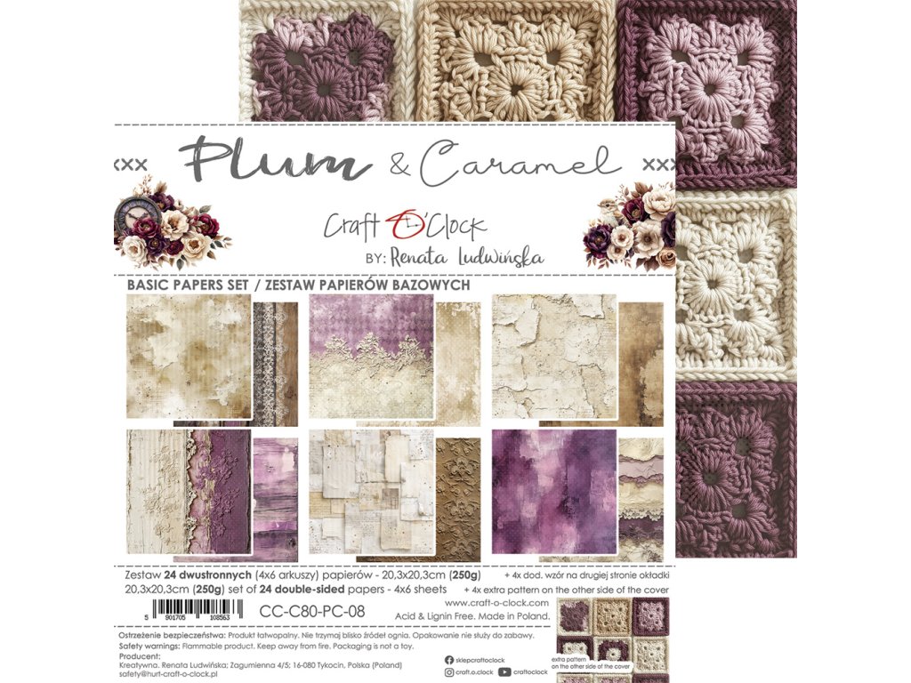 Sada papírů Craft O´Clock Plum And Caramel švestka a karamel pozadí 20x20cm