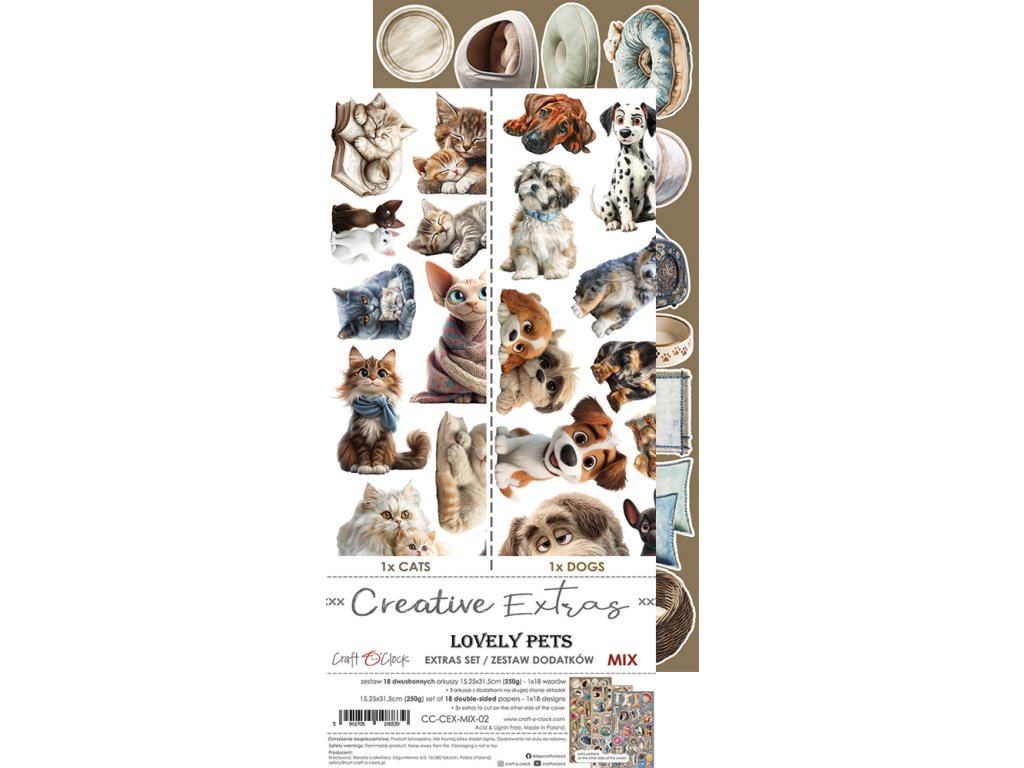 Sada papírů Craft O´Clock velký mix Cats and Dogs psi a kočky 30x15cm 18ks