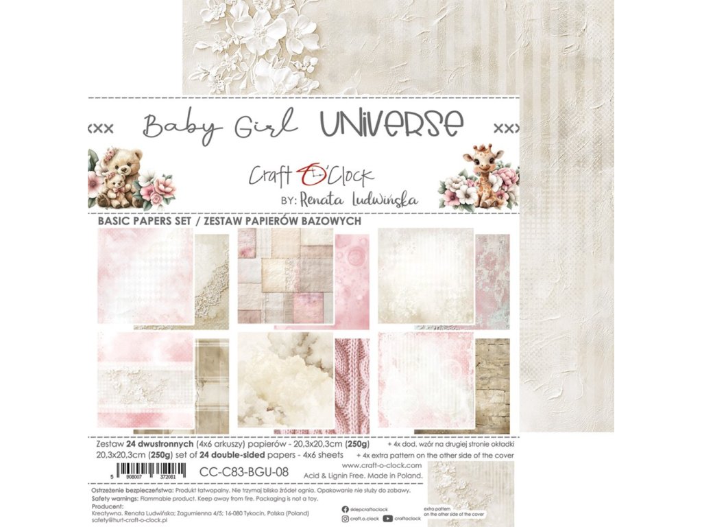 Sada papírů Craft O´Clock Baby Girl Universe holčičí svět pozadí 20x20cm