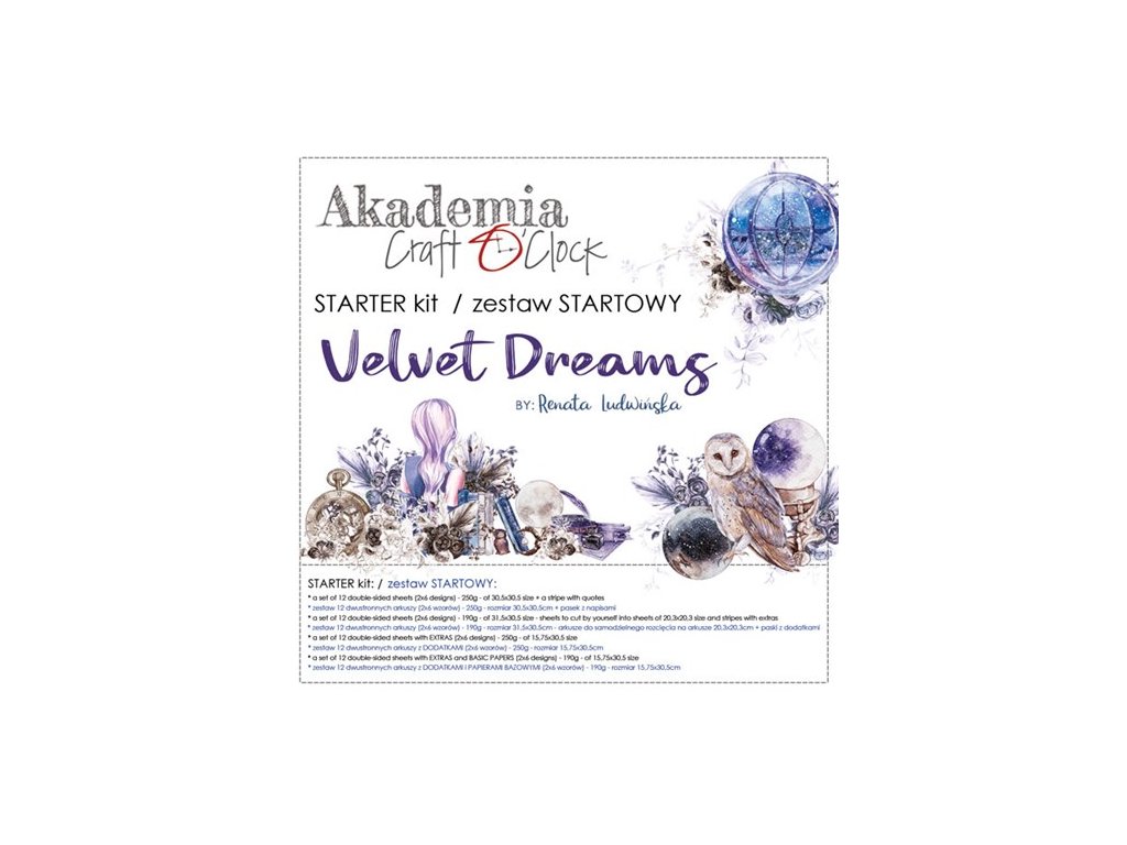 Sada papírů Craft O´Clock Starter Kit Velvet Dreams startovací sada sametové sny 30x30cm
