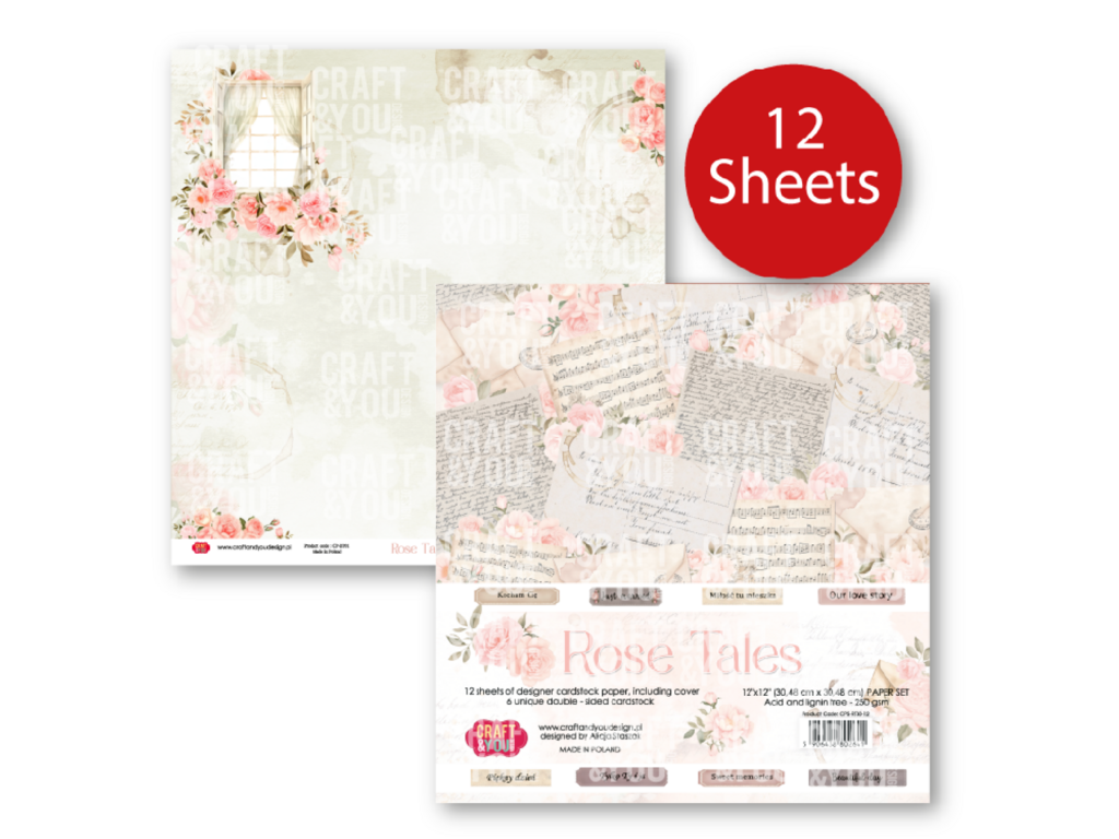 Sada papírů Craft & You Design Rose Tales příběhy růží 30x30cm 12ks