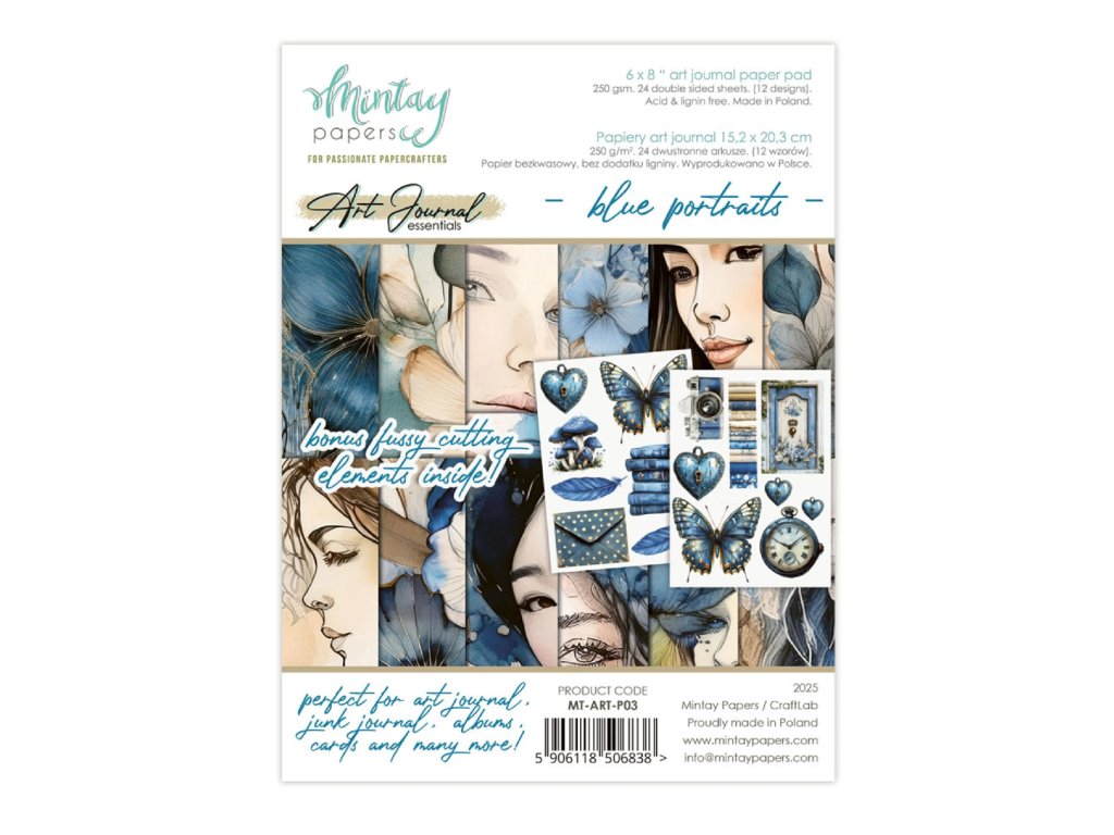 Sada papírů Mintay Art Journal Paper modré portréty 15,2 x 20,3