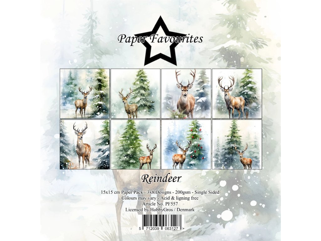 Sada papírů Paper Favourites Reindeer jeleni 15x15cm