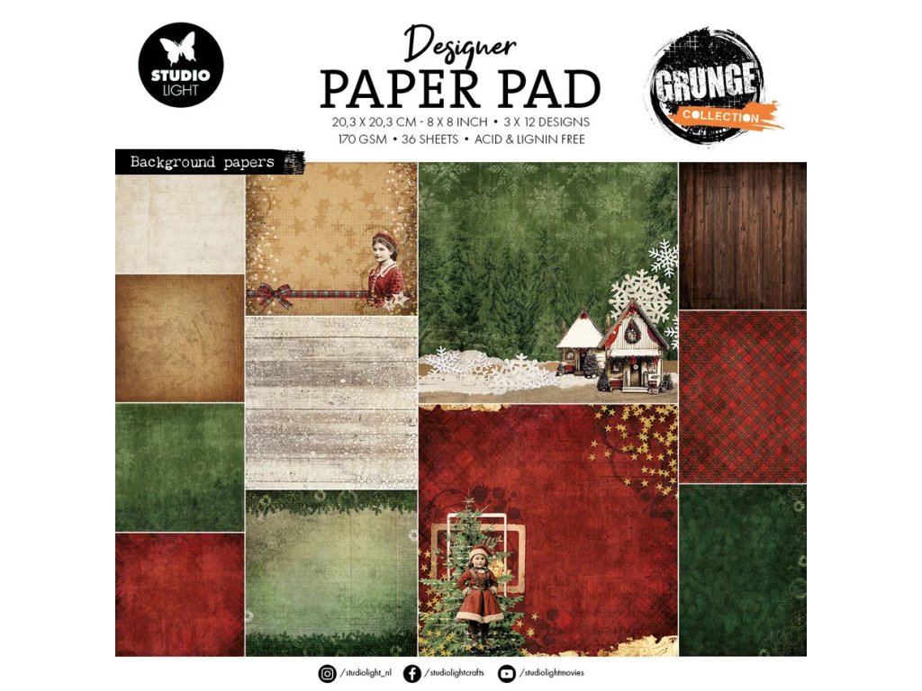 Sada papírů Studio light Paper Grunge pozadí 20x20cm