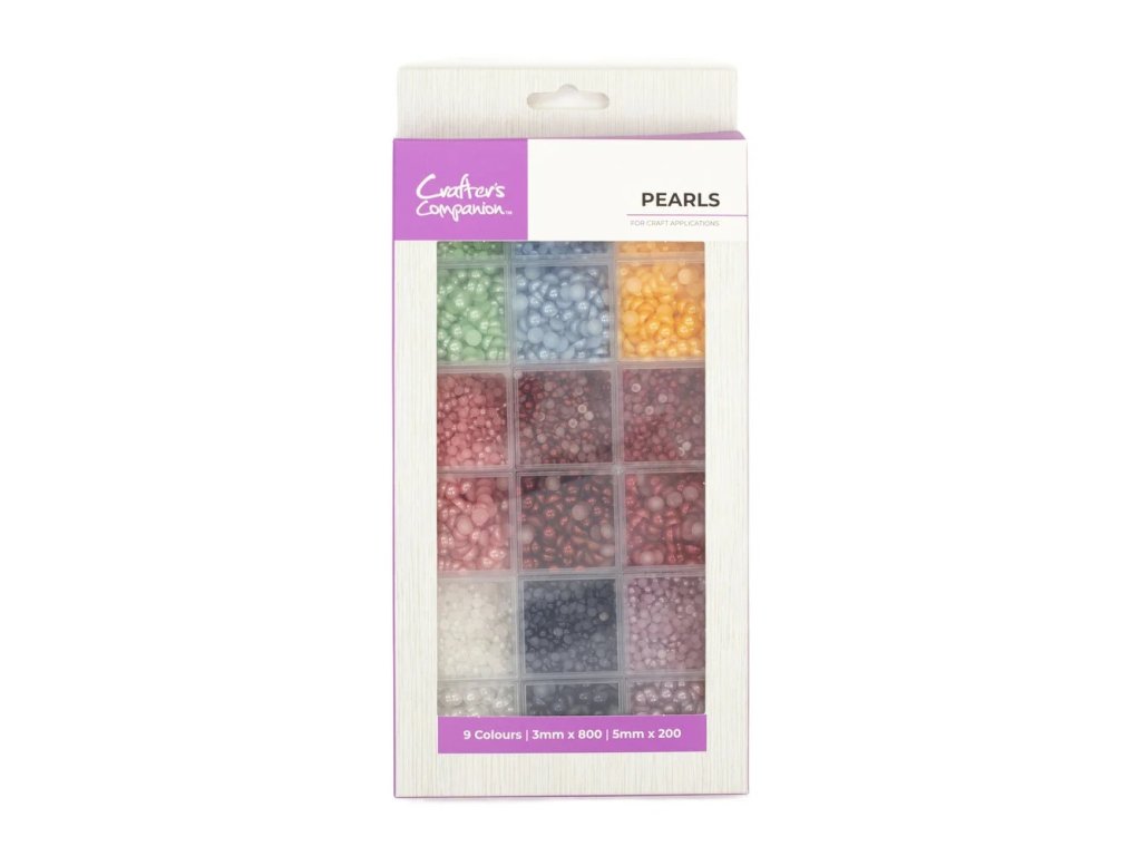 9 barev, 2 velikosti každé barvy 3 mm a 5 mm. Přibližně 9 000 řemeslných perel v devíti barvách a dvou velikostech. Velikost perel 3 mm a 5 mm. Devět barev - navrženo jako doplněk k sadám razítek, raznic a šablon Touch of Sparkle. Spojte je se svým oblíbeným vzorem a pomocí přiložené šablony přidejte třpytivé perly a vytvořte vánoční přání, která budou zářit. Pomocí nástroje Crafter's Companion Wax Gem Tool a specializovaného lepidla na drahokamy můžete snadno a precizně vytvářet umělecké projekty s krystaly a zdobit ručně vyráběná přání.