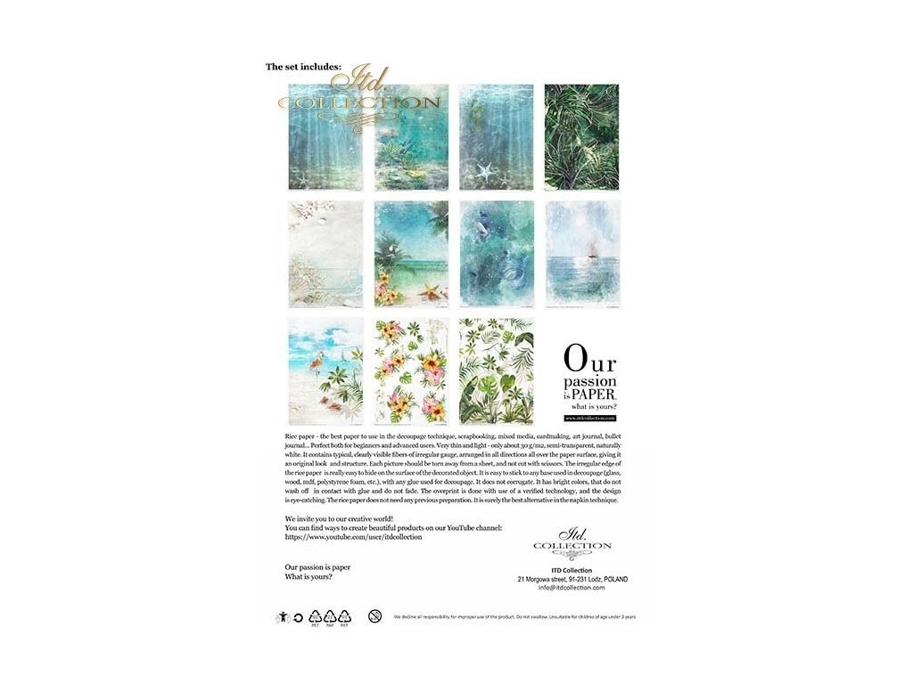Sada obsahuje: - 11 rýžových papírů 30-35 g/m² s grafikou - formát A4 (A4 - 210x297 mm / 8,27x11,7 palce ; gramáž papíru 30-35 g/m²)