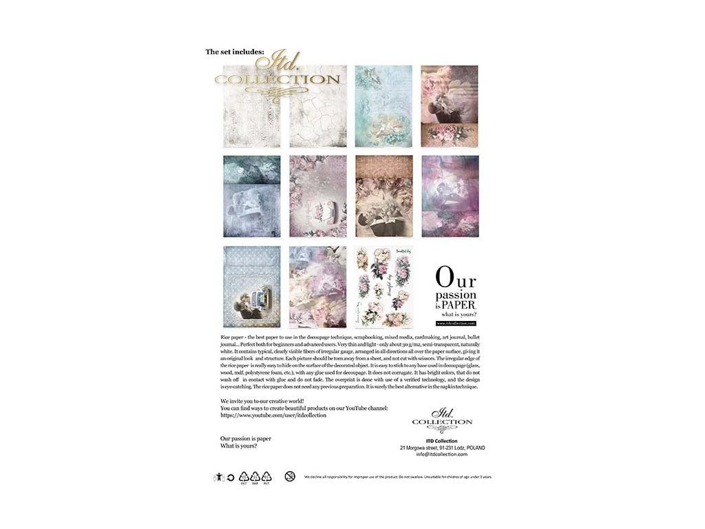 Sada obsahuje: - 11 rýžových papírů 30-35 g/m² s grafikou - formát A4 (A4 - 210x297 mm / 8,27x11,7 palce ; gramáž papíru 30-35 g/m²)
