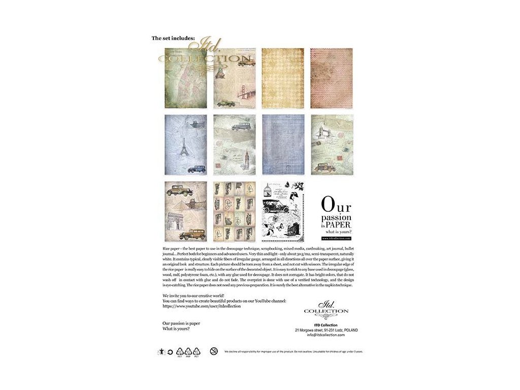 Sada obsahuje: - 11 rýžových papírů 30-35 g/m² s grafikou - formát A4 (A4 - 210x297 mm / 8,27x11,7 palce ; gramáž papíru 30-35 g/m²)