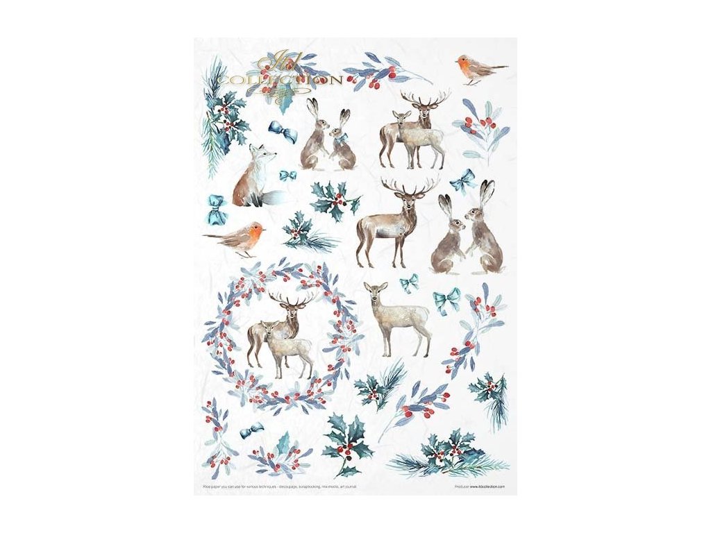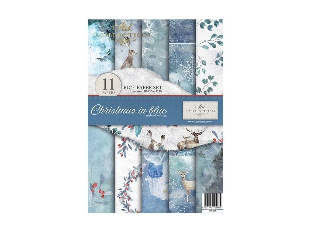 Sada rýžových papírů ITD Collection RP025 Christmas in blue rozměr A4 11ks