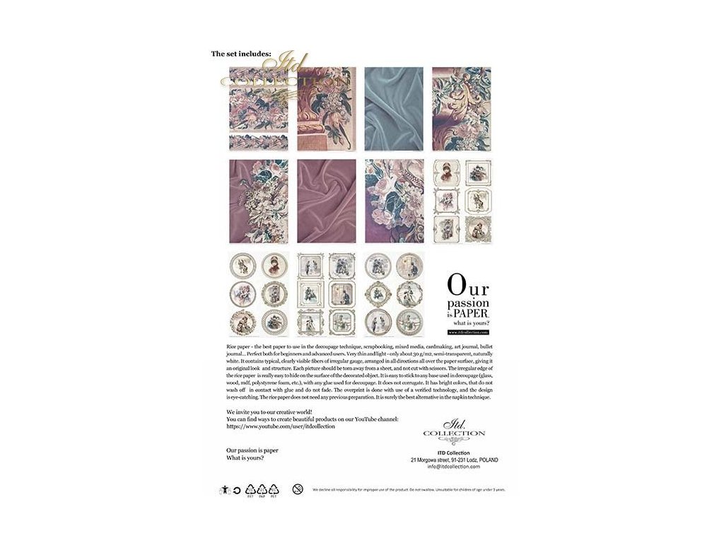 Sada obsahuje: - 11 rýžových papírů 30-35 g/m² s grafikou - formát A4 (A4 - 210x297 mm / 8,27x11,7 palce ; gramáž papíru 30-35 g/m²)