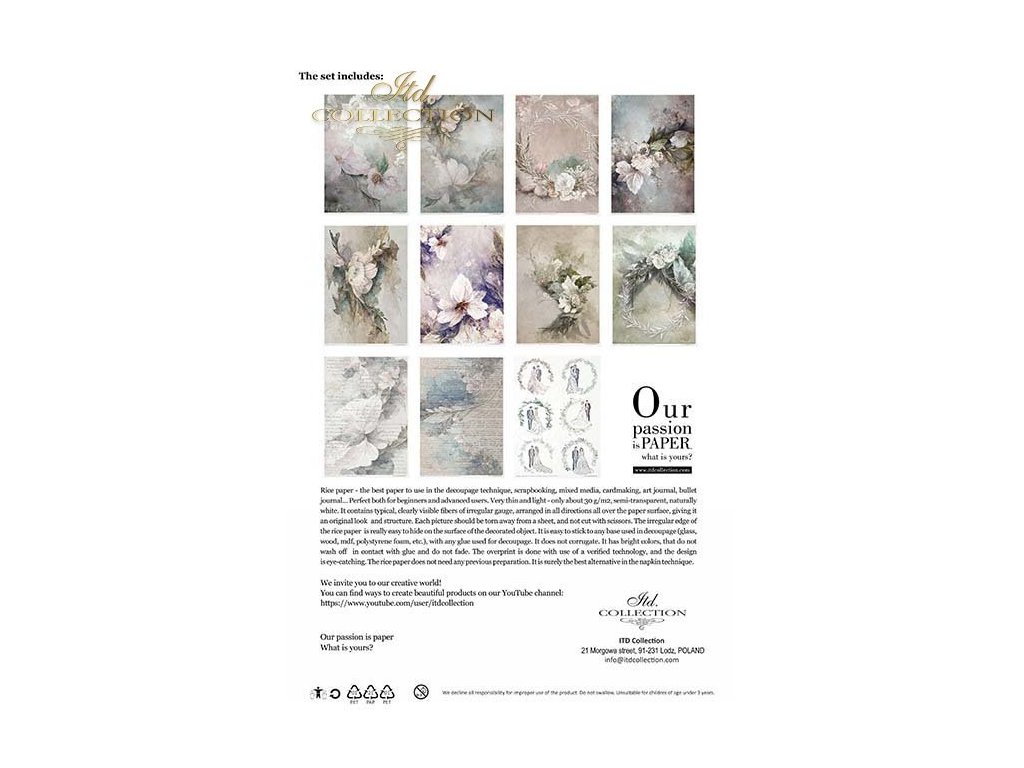 Sada obsahuje: - 11 rýžových papírů 30-35 g/m² s grafikou - formát A4 (A4 - 210x297 mm / 8,27x11,7 palce ; gramáž papíru 30-35 g/m²)
