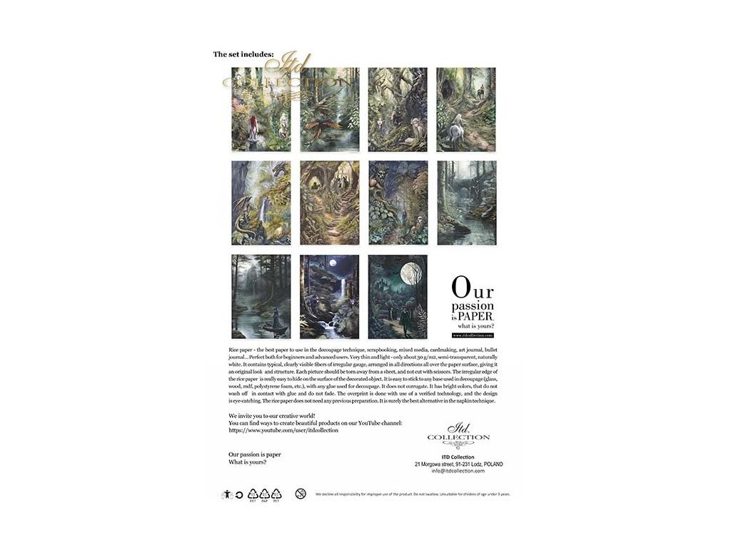 Sada obsahuje: - 11 rýžových papírů 30-35 g/m² s grafikou - formát A4 (A4 - 210x297 mm / 8,27x11,7 palce ; gramáž papíru 30-35 g/m²)