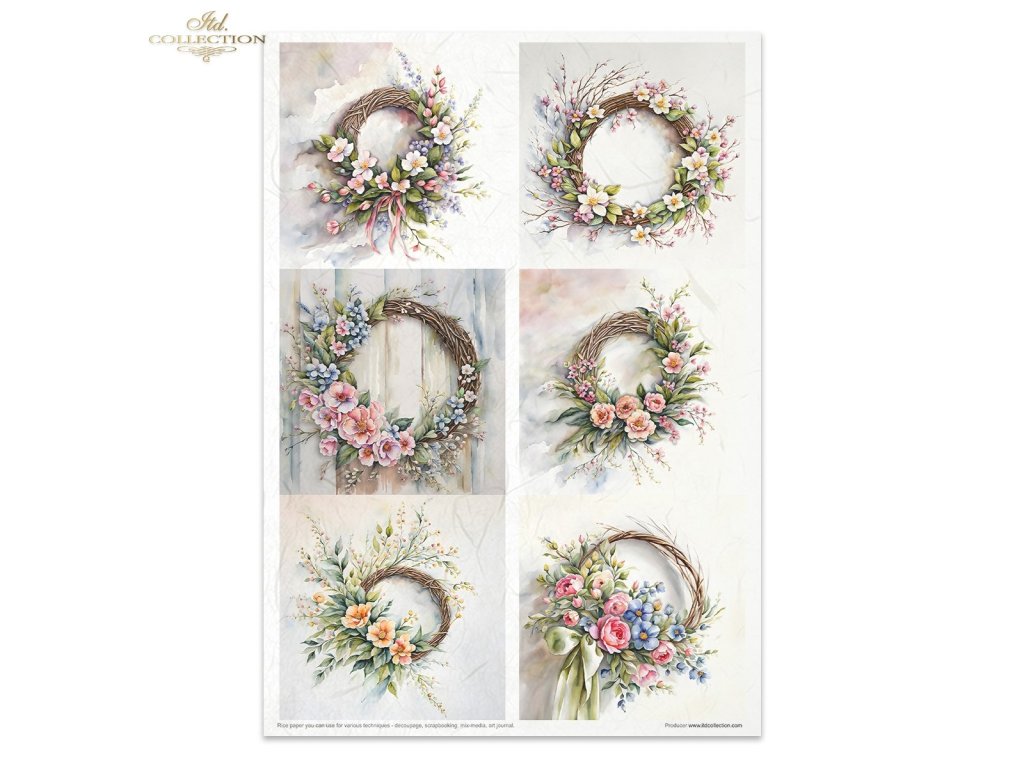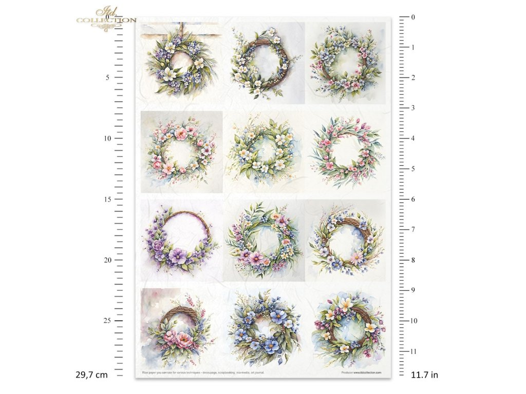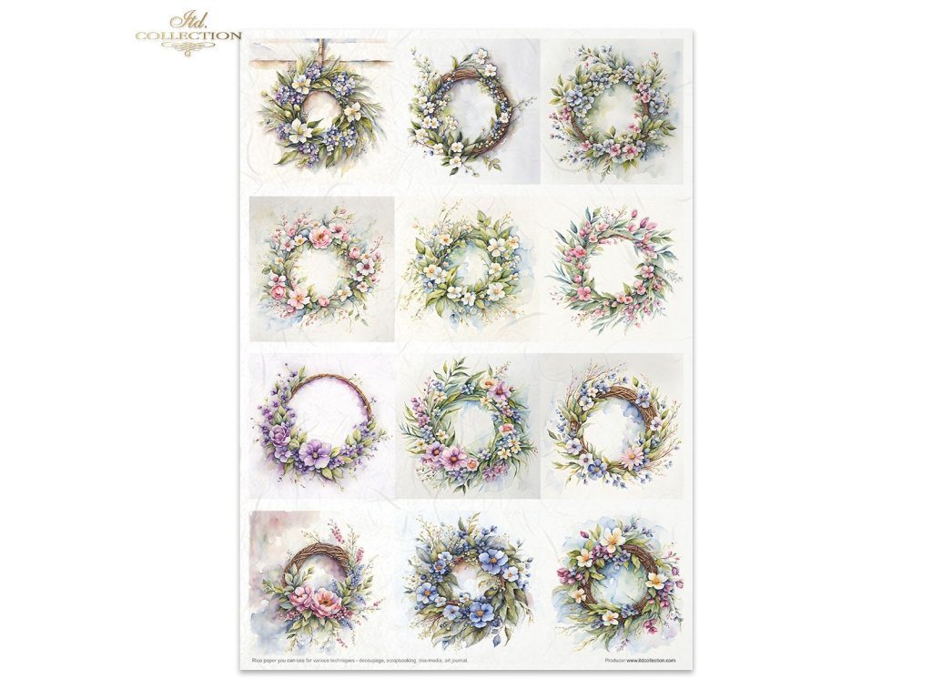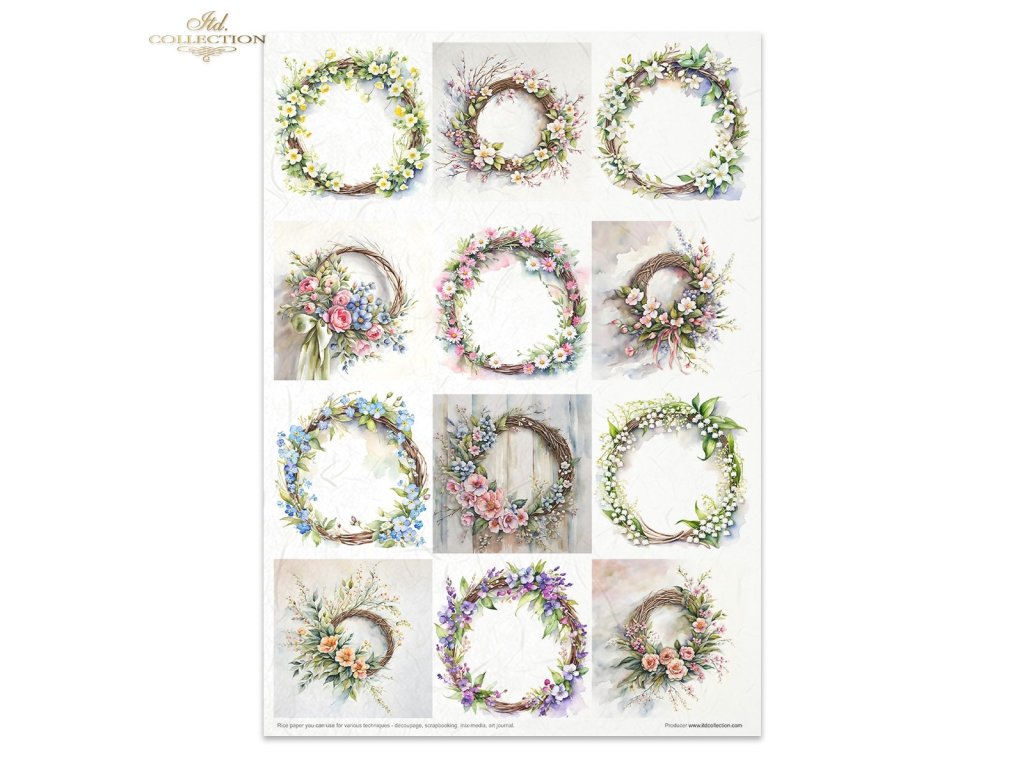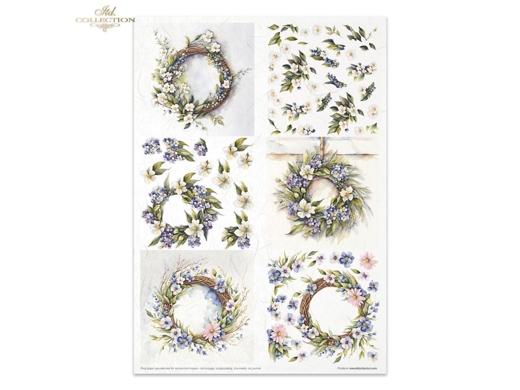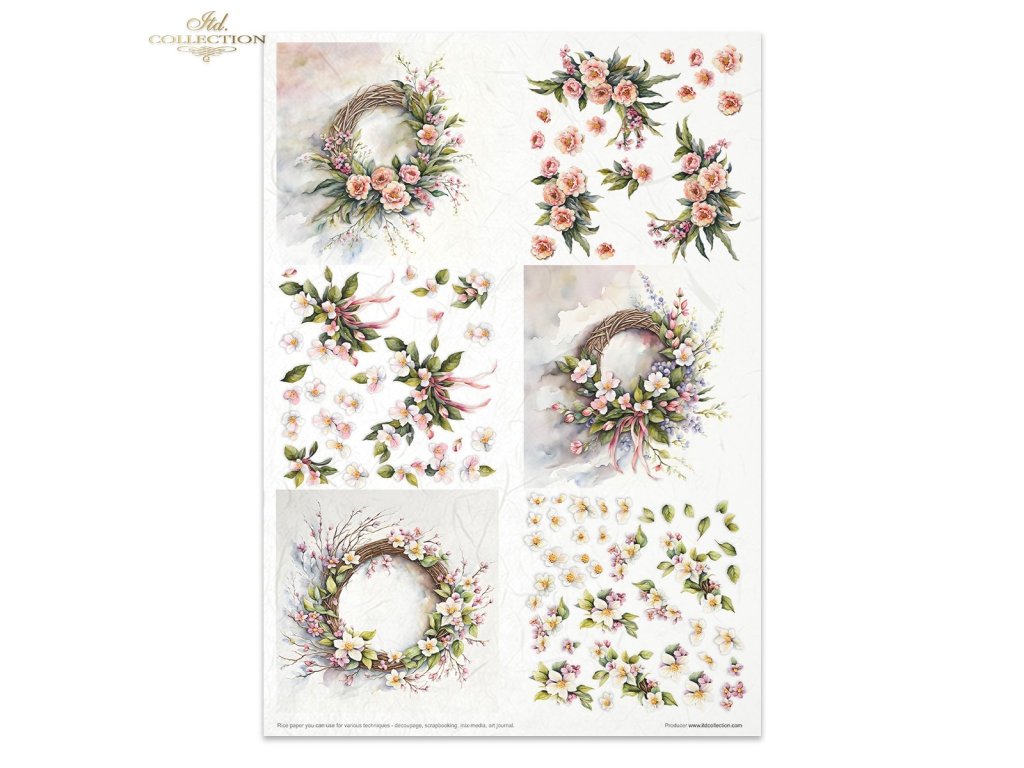 Sada rýžových papírů ITD Collection RP071 Spring Wreath rozměr A4 11ks