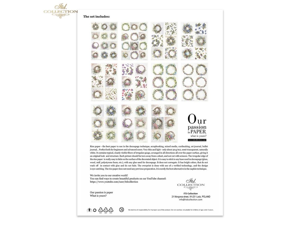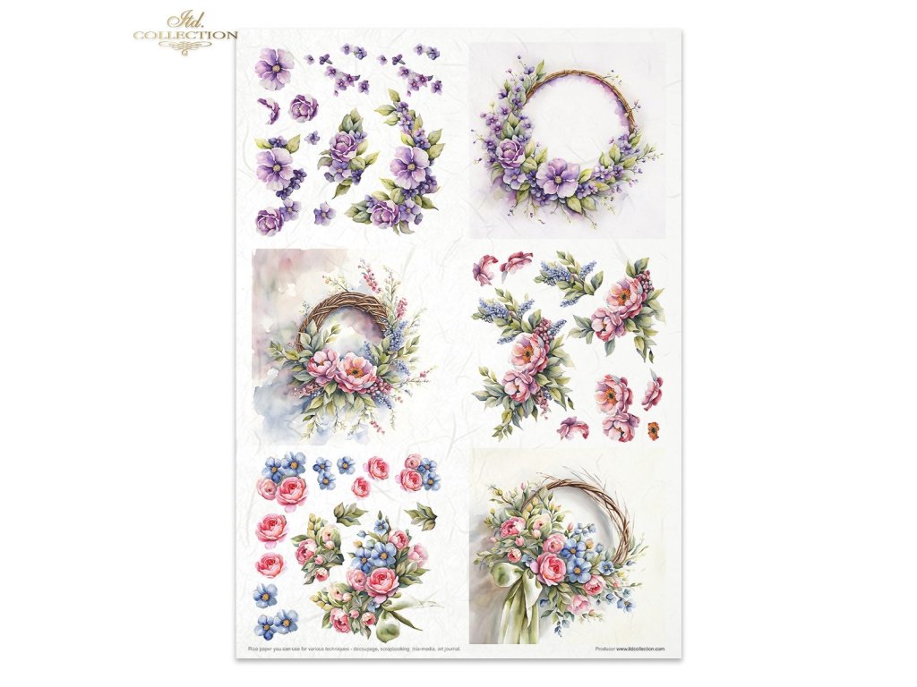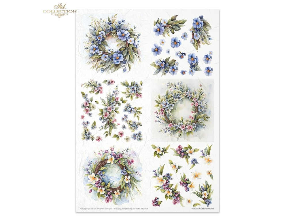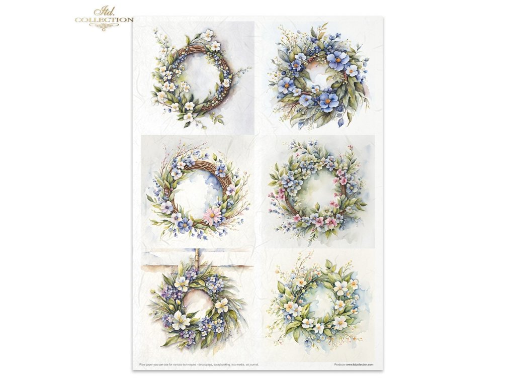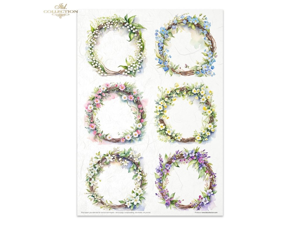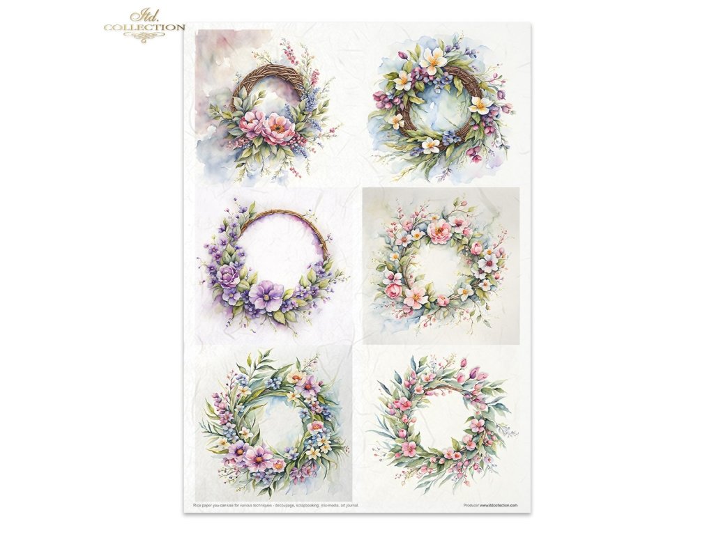 Sada rýžových papírů ITD Collection RP071 Spring Wreath rozměr A4 11ks