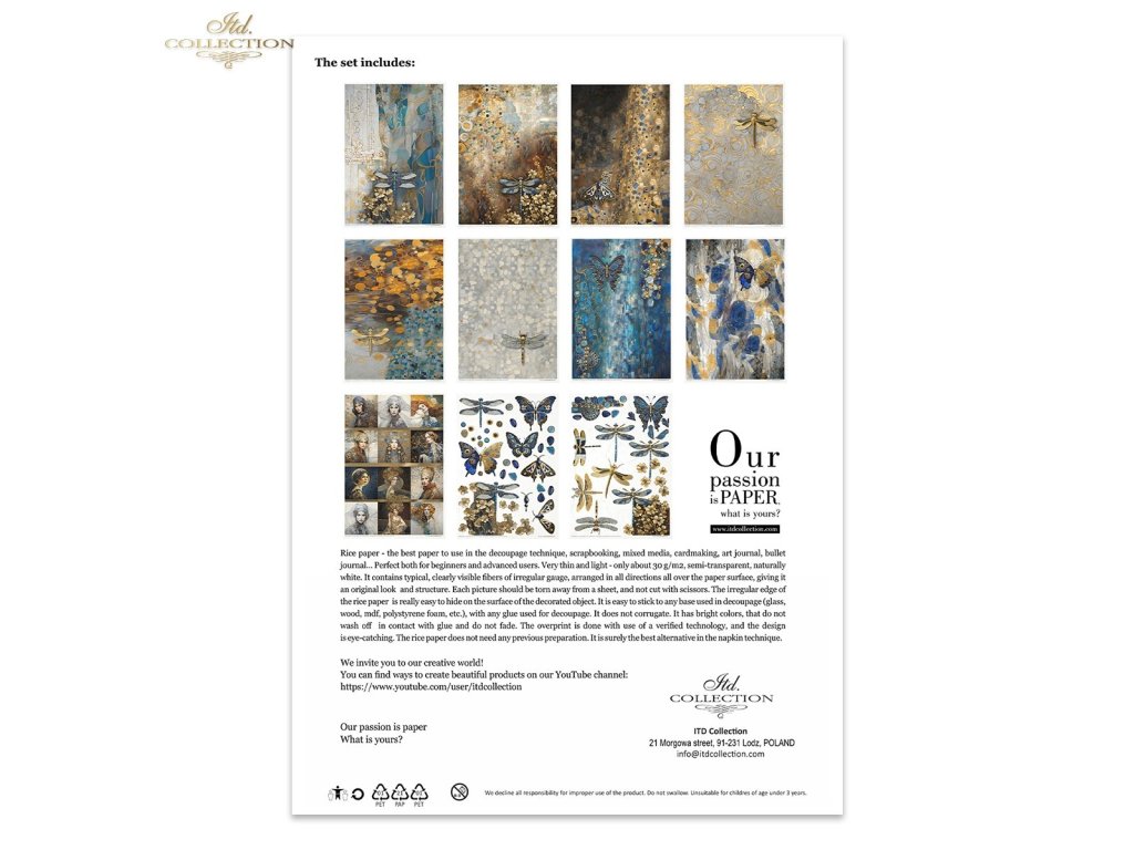 Sada obsahuje: - 11 rýžových papírů 30-35 g/m² s grafikou - formát A4 (A4 - 210x297 mm / 8,27x11,7 palce ; gramáž papíru 30-35 g/m²)