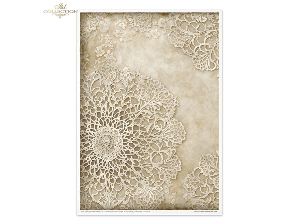 Rýžový papír - nejlepší papír pro použití v technice decoupage, scrapbookingu, výrobě přání, art journalu, bullet journalu... Ideální pro začátečníky i pokročilé. Velmi tenký a lehký - pouze asi 30 g/m2, poloprůhledný, přirozeně bílý. Obsahuje typická, jasně viditelná vlákna nepravidelné tloušťky, uspořádaná ve všech směrech po celém povrchu papíru, což mu dodává originální vzhled a strukturu. Papír je neobvykle pevný a odolný, nerozpadá se v rukou. Snadno se lepí na jakýkoli podklad používaný v decoupage (sklo, dřevo, MDF, polystyrenová pěna atd.) jakýmkoli lepidlem používaným na decoupage. Je možné ho mírně prodloužit při zdobení zaoblených předmětů. Nevlní se. Je to jistě nejlepší alternativa v technice ubrousků.