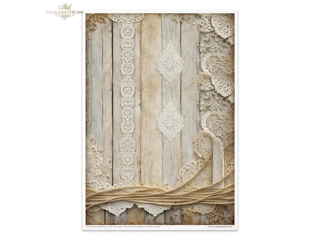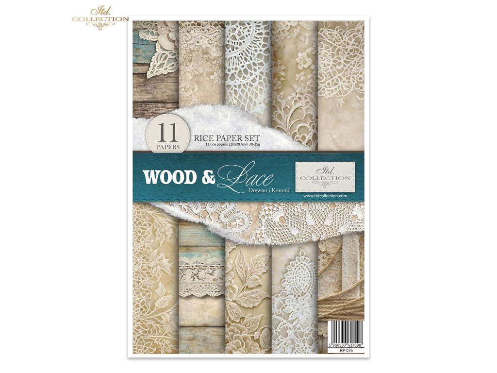 Sada rýžových papírů ITD Collection RP075 Wood & Lace rozměr A4 11ks