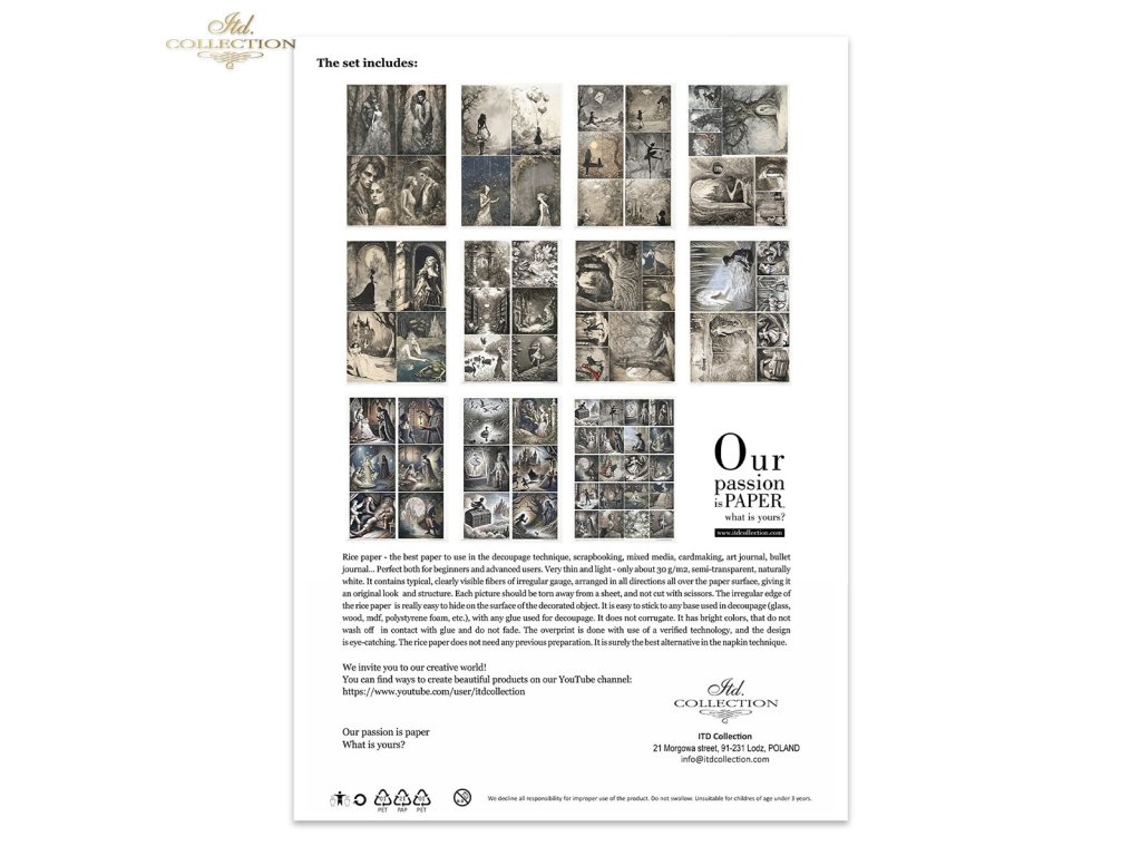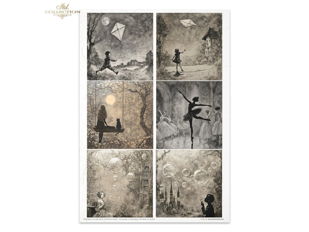 Sada obsahuje: - 11 rýžových papírů 30-35 g/m² s grafikou - formát A4 (A4 - 210x297 mm / 8,27x11,7 palce ; gramáž papíru 30-35 g/m²)