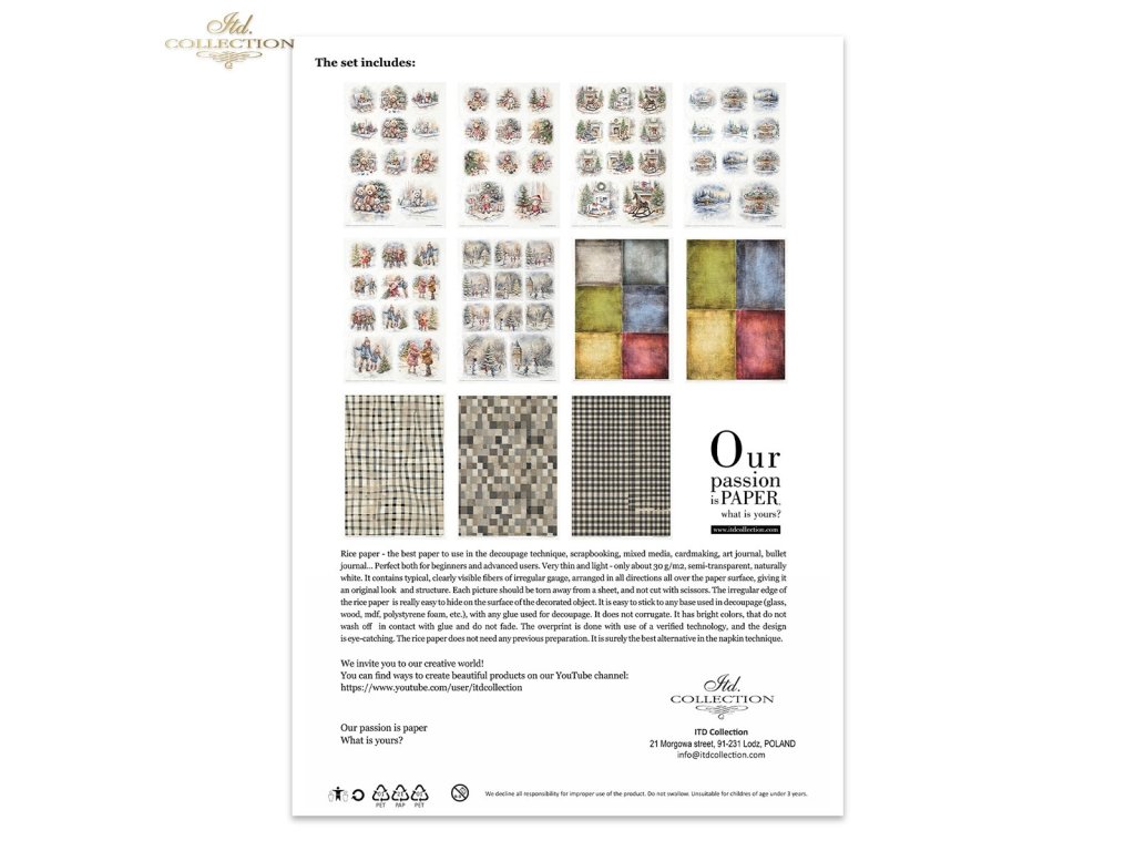 Sada obsahuje: - 11 rýžových papírů 30-35 g/m² s grafikou - formát A4 (A4 - 210x297 mm / 8,27x11,7 palce ; gramáž papíru 30-35 g/m²)