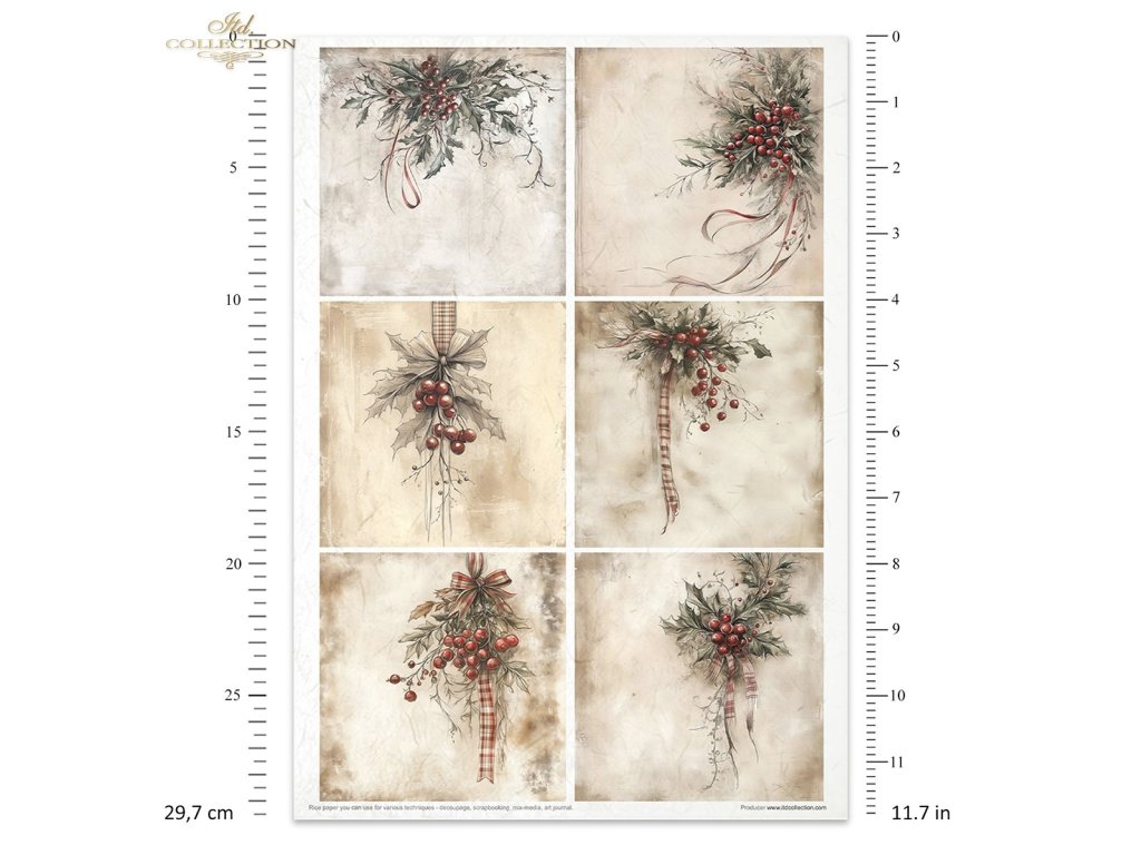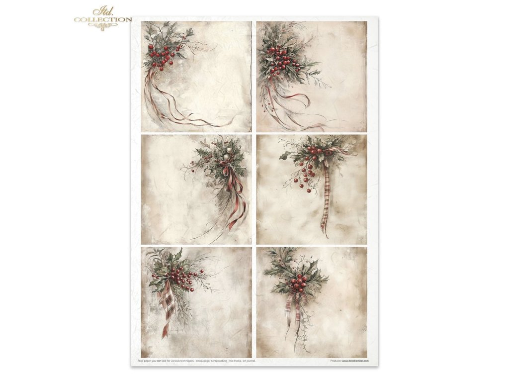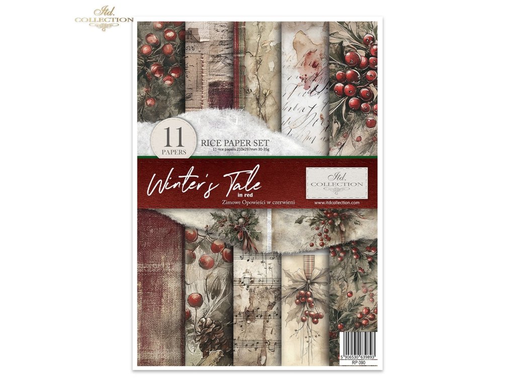 Sada rýžových papírů ITD Collection RP090 Winter's Tale in red rozměr A4 11ks