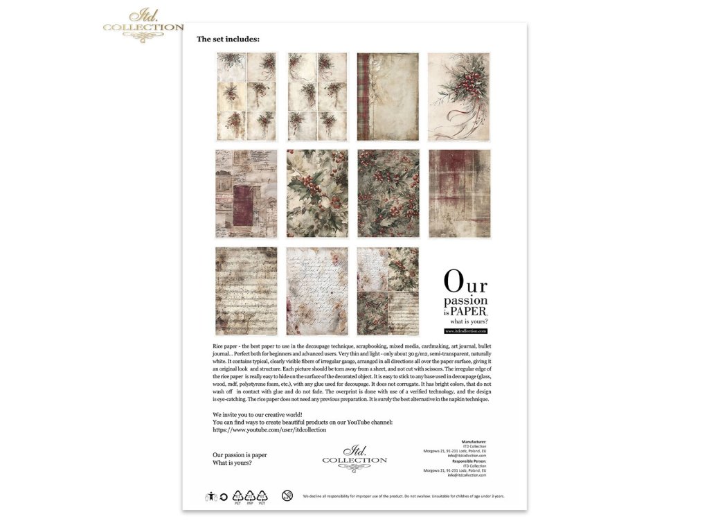Sada obsahuje: - 11 rýžových papírů 30-35 g/m² s grafikou - formát A4 (A4 - 210x297 mm / 8,27x11,7 palce ; gramáž papíru 30-35 g/m²)