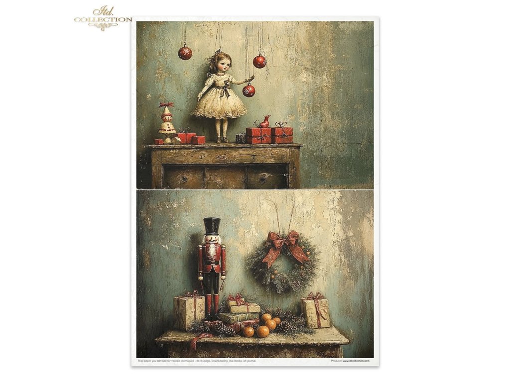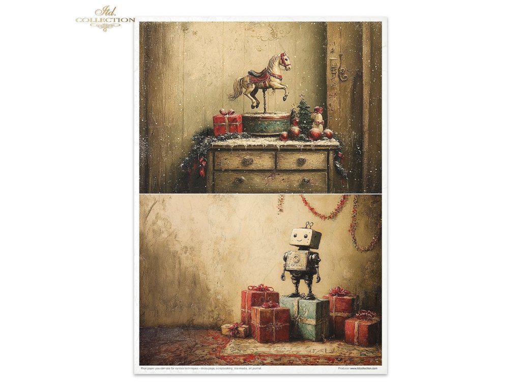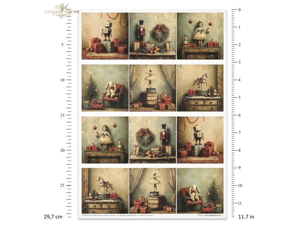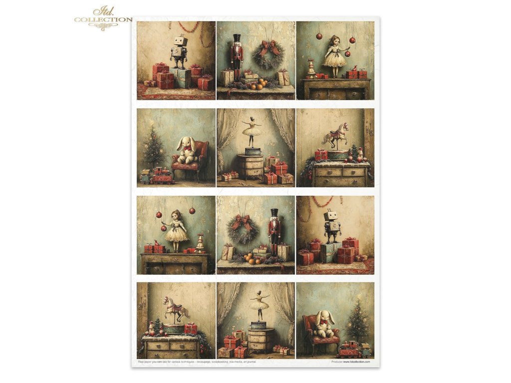 Sada rýžových papírů ITD Collection RP092 Winter's Retro Toys retro hračky A4 11ks