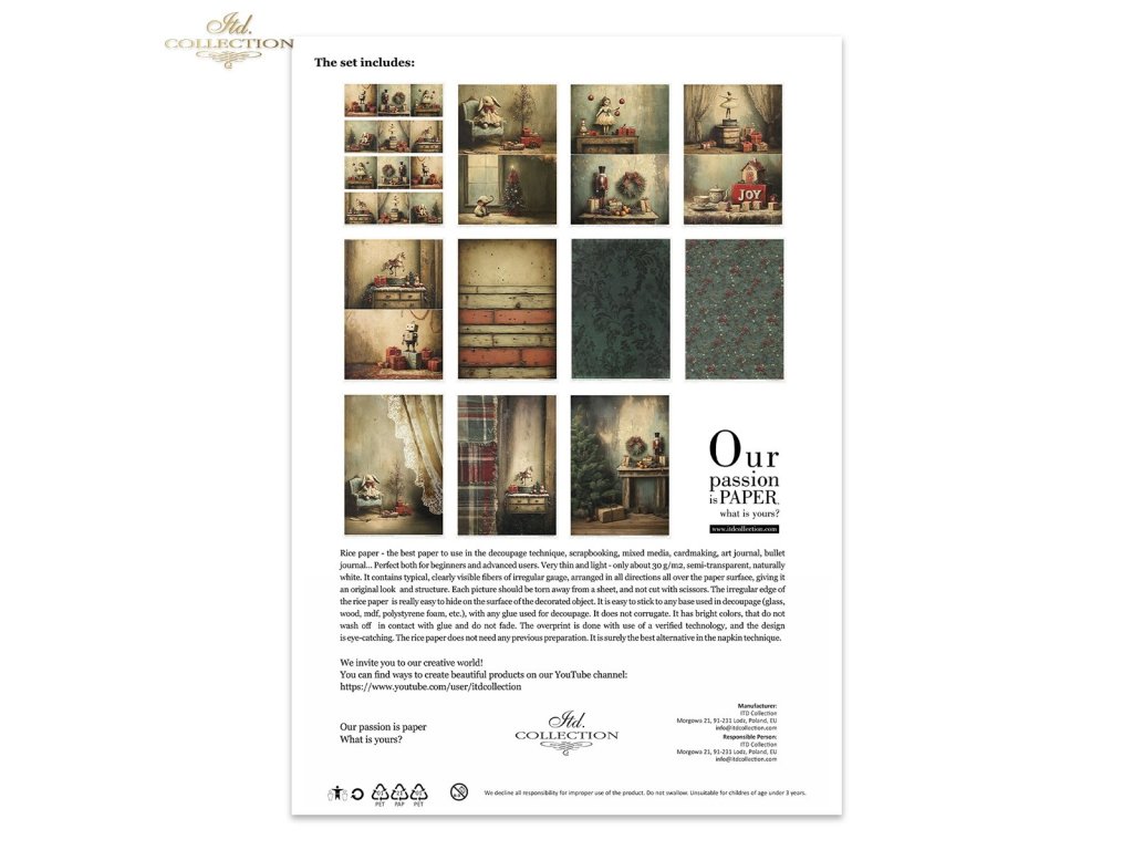 „Naší vášní je papír – a už více než 26 let přinášíme inspiraci tvořivým lidem po celém světě. Z malé rodinné firmy jsme vyrostli v mezinárodního dodavatele s více než 8 500 vzory pro decoupage a scrapbooking. Naše papíry putují do 70 zemí a proměňují se v jedinečná, ručně vyráběná díla, která těší oči i srdce.“