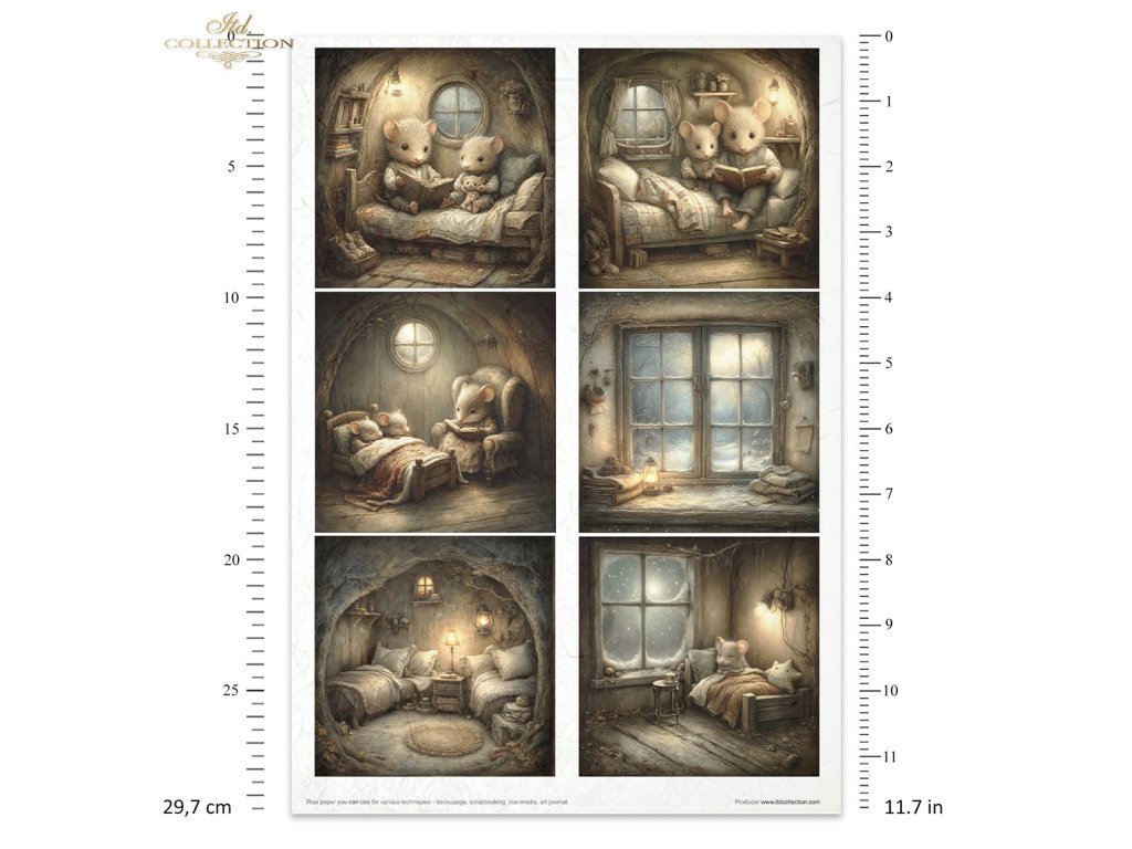 Sada obsahuje: - 11 rýžových papírů 30-35 g/m² s grafikou - formát A4 (A4 - 210x297 mm / 8,27x11,7 palce ; gramáž papíru 30-35 g/m²)