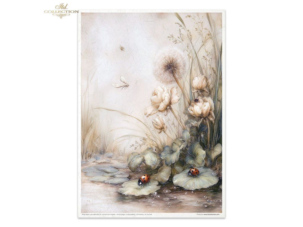Rýžový papír - nejlepší papír pro použití v technice decoupage, scrapbookingu, výrobě přání, art journalu, bullet journalu... Ideální pro začátečníky i pokročilé. Velmi tenký a lehký - pouze asi 30 g/m2, poloprůhledný, přirozeně bílý. Obsahuje typická, jasně viditelná vlákna nepravidelné tloušťky, uspořádaná ve všech směrech po celém povrchu papíru, což mu dodává originální vzhled a strukturu. Papír je neobvykle pevný a odolný, nerozpadá se v rukou. Snadno se lepí na jakýkoli podklad používaný v decoupage (sklo, dřevo, MDF, polystyrenová pěna atd.) jakýmkoli lepidlem používaným na decoupage. Je možné ho mírně prodloužit při zdobení zaoblených předmětů. Nevlní se. Je to jistě nejlepší alternativa v technice ubrousků.