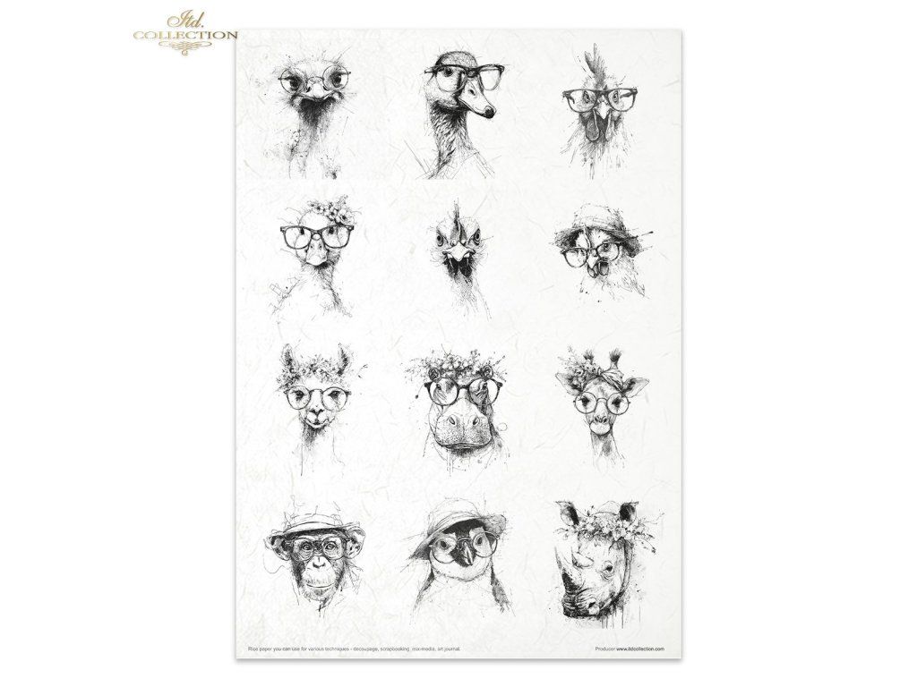 Sada rýžových papírů ITD Collection RP102 Crazy Animals blíznivá zvířata A4 11ks