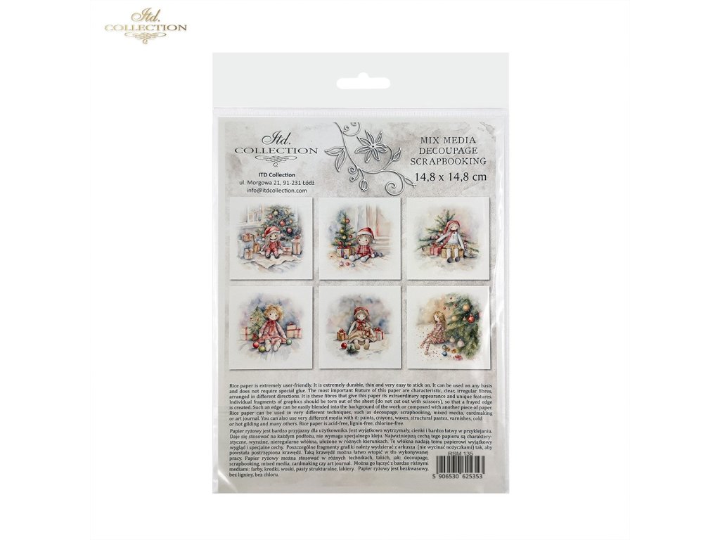Sada mimořádných rýžových papírů, které lze využít v jakékoli kreativní práci, jako je decoupage, scrapbooking, kombinovaná média, výroba přání a umělecký deník. Sada obsahuje 6 barevných vzorů, které jsou shromážděny v jednom tématickém poli a nejsou k dispozici mimo sadu. Každý list představuje pouze jeden design, což usnadňuje jeho začlenění do již plánované práce. Grafiky jsou velmi užitečné jako hlavní ornamentální téma, které lze začlenit na malé a středně velké předměty, jako jsou hrnky, svíčky, krabičky, krabičky na kapesníky, podšálky, vajíčka, vánoční ozdoby. Všechny grafiky v sadě k sobě ladí barvami a vzory – jsou vhodné při tvorbě předmětů ze sady. Na zadní straně sady najdete miniverze všech grafik, které jsou v sadě. Každý obrázek je umístěn na světlém, nepravidelném pozadí, které je univerzální. Snadno je lze implementovat s jinými grafikami nebo na jakékoli jiné pozadí. Přesvědčte se sami! Přejeme vám skvělou zábavu!