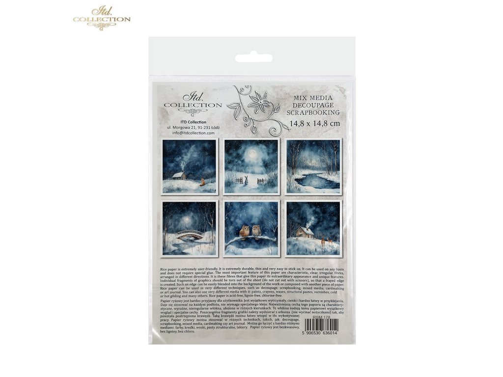 Sada mimořádných rýžových papírů, které lze využít v jakékoli kreativní práci, jako je decoupage, scrapbooking, kombinovaná média, výroba přání a umělecký deník. Sada obsahuje 6 barevných vzorů, které jsou shromážděny v jednom tématickém poli a nejsou k dispozici mimo sadu. Každý list představuje pouze jeden design, což usnadňuje jeho začlenění do již plánované práce. Grafiky jsou velmi užitečné jako hlavní ornamentální téma, které lze začlenit na malé a středně velké předměty, jako jsou hrnky, svíčky, krabičky, krabičky na kapesníky, podšálky, vajíčka, vánoční ozdoby. Všechny grafiky v sadě k sobě ladí barvami a vzory – jsou vhodné při tvorbě předmětů ze sady. Na zadní straně sady najdete miniverze všech grafik, které jsou v sadě. Každý obrázek je umístěn na světlém, nepravidelném pozadí, které je univerzální. Snadno je lze implementovat s jinými grafikami nebo na jakékoli jiné pozadí. Přesvědčte se sami! Přejeme vám skvělou zábavu!