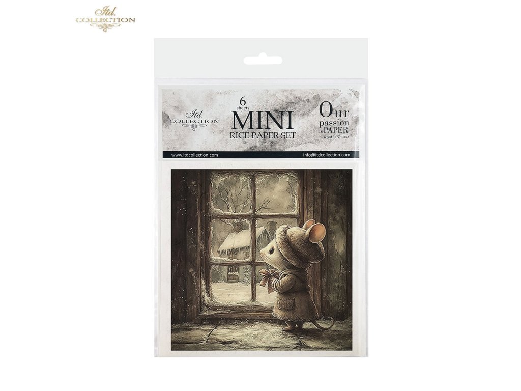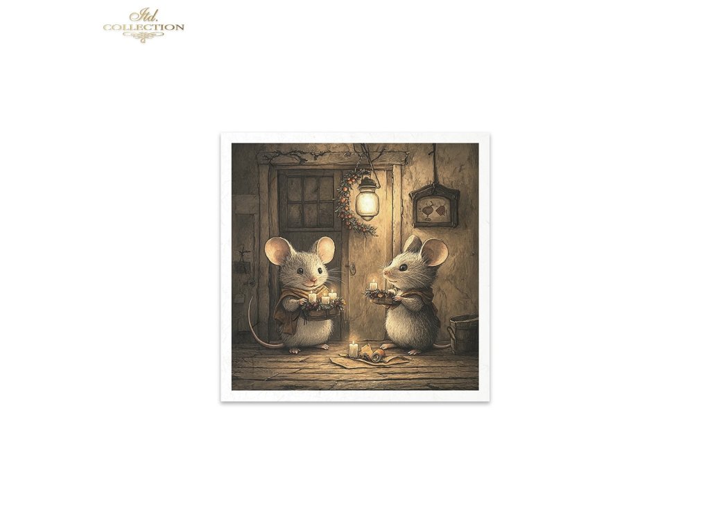 Sada rýžových papírů ITD Collection RSM188 Christmas Mice myšky o Vánocích 14,8x14,8 cm 6ks