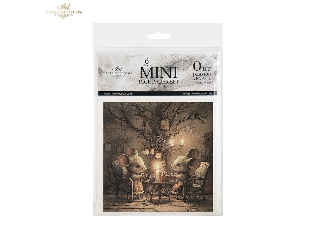 Sada rýžových papírů ITD Collection RSM189 Christmas Mice myšky a vánoční nálada 14,8x14,8 cm 6ks