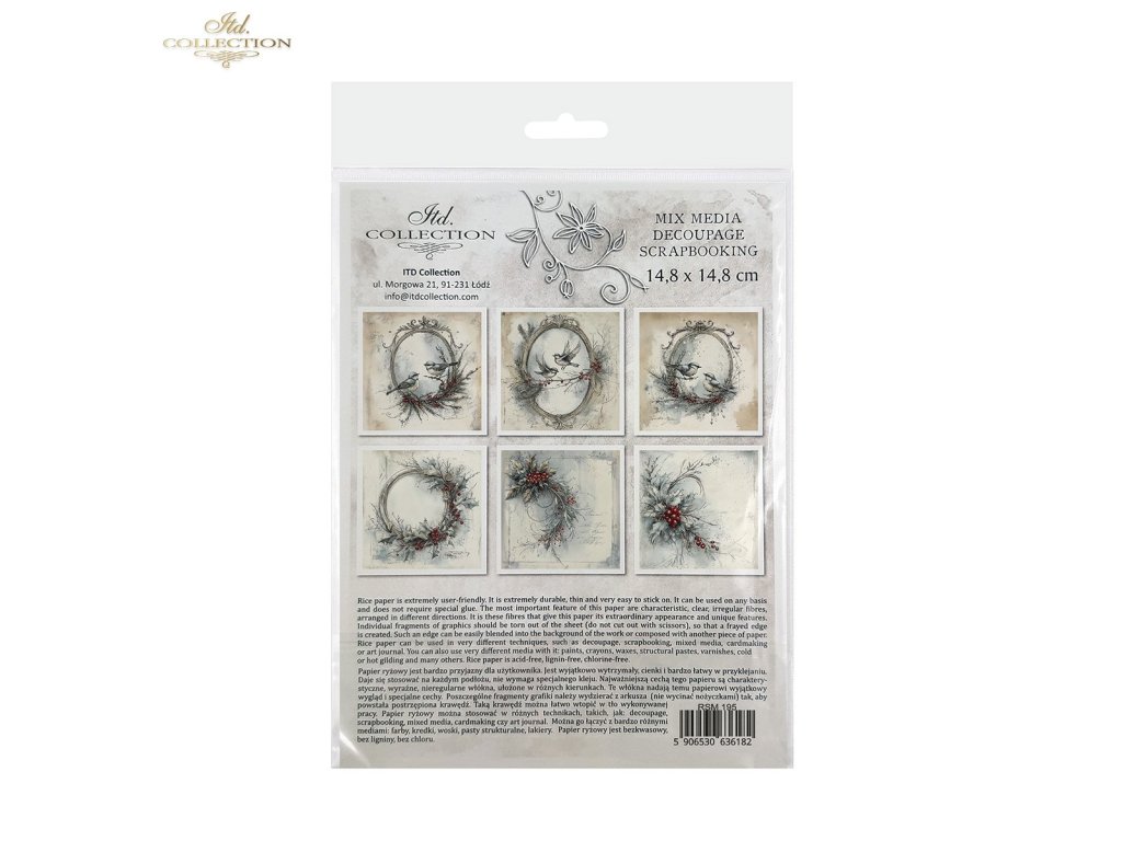Sada rýžových papírů ITD Collection RSM195 Christmas birds ptáčci 14,8x14,8 cm 6ks