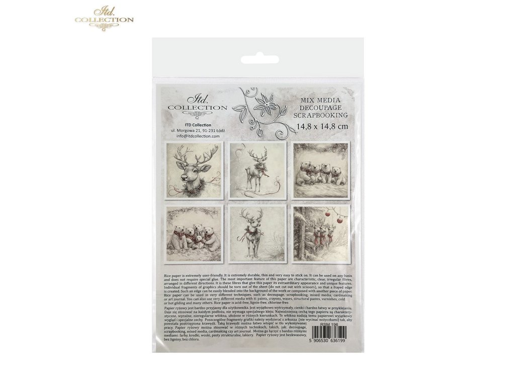 Sada rýžových papírů ITD Collection RSM196 polar bears lední medvědi 14,8x14,8 cm 6ks