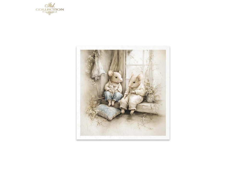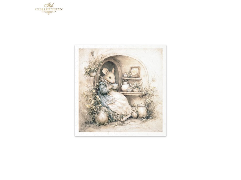 Mini sada rýžového papíru RSM228 - Myši, idyla, akvarel, retro, les, příroda
