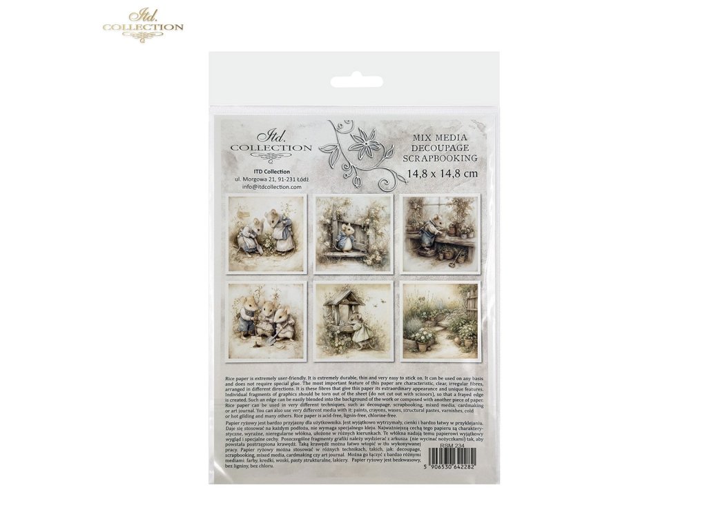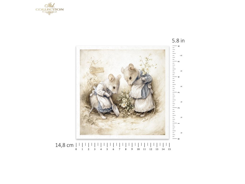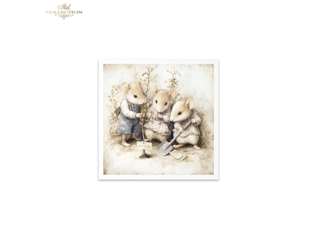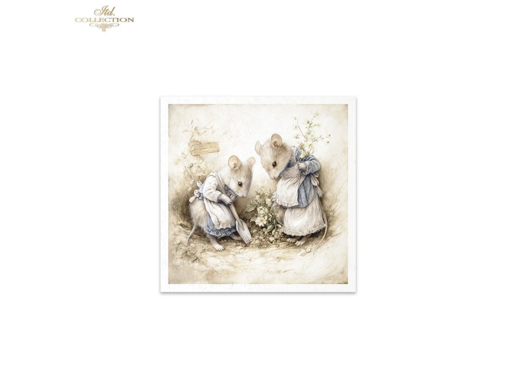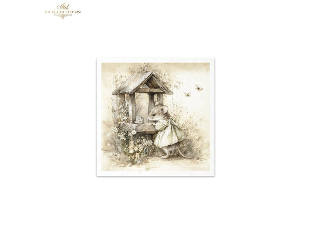 Mini sada rýžového papíru RSM234 - Myši, idyla, akvarel, retro, les, příroda