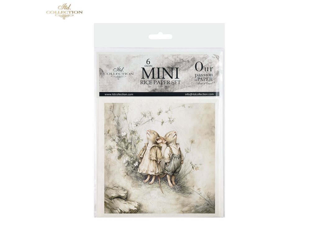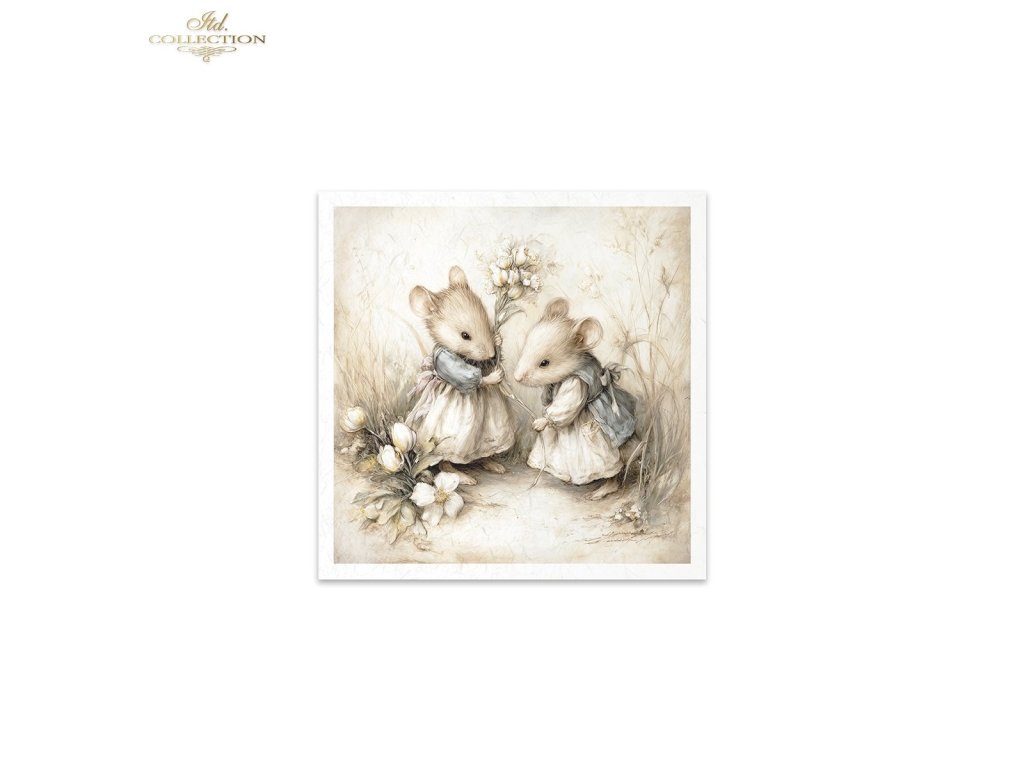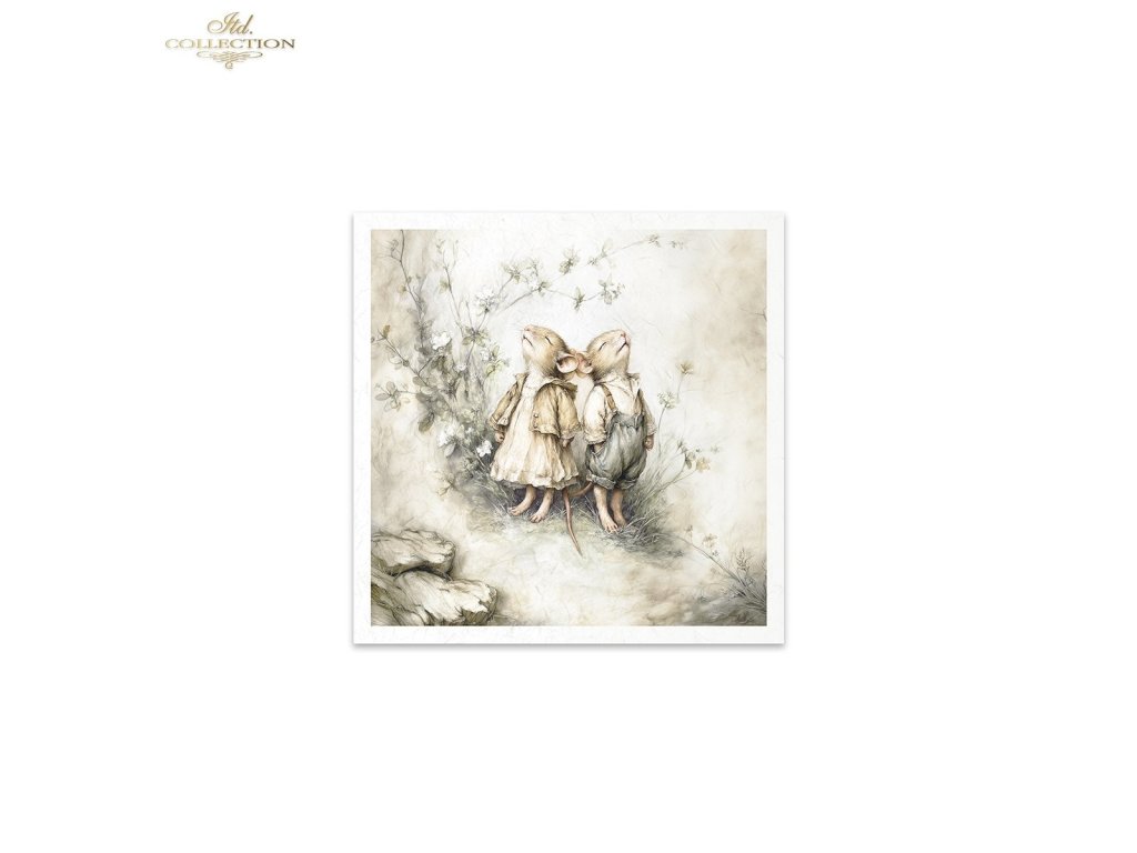 Mini sada rýžového papíru RSM236 - Myši, idyla, akvarel, retro, les, příroda
