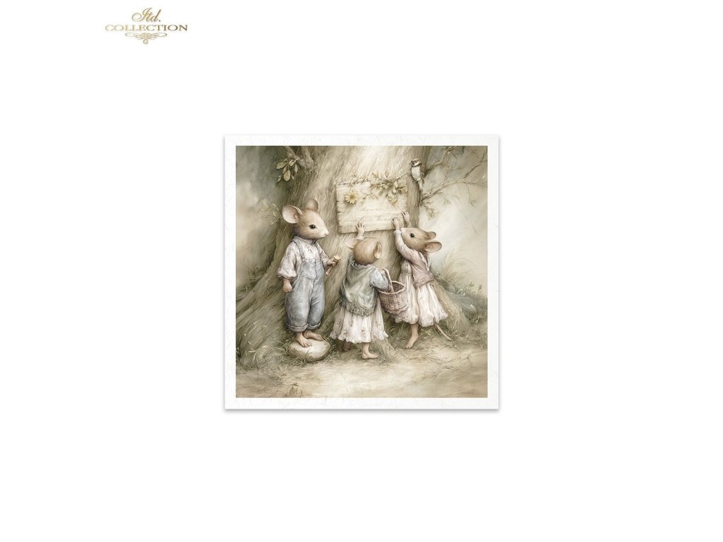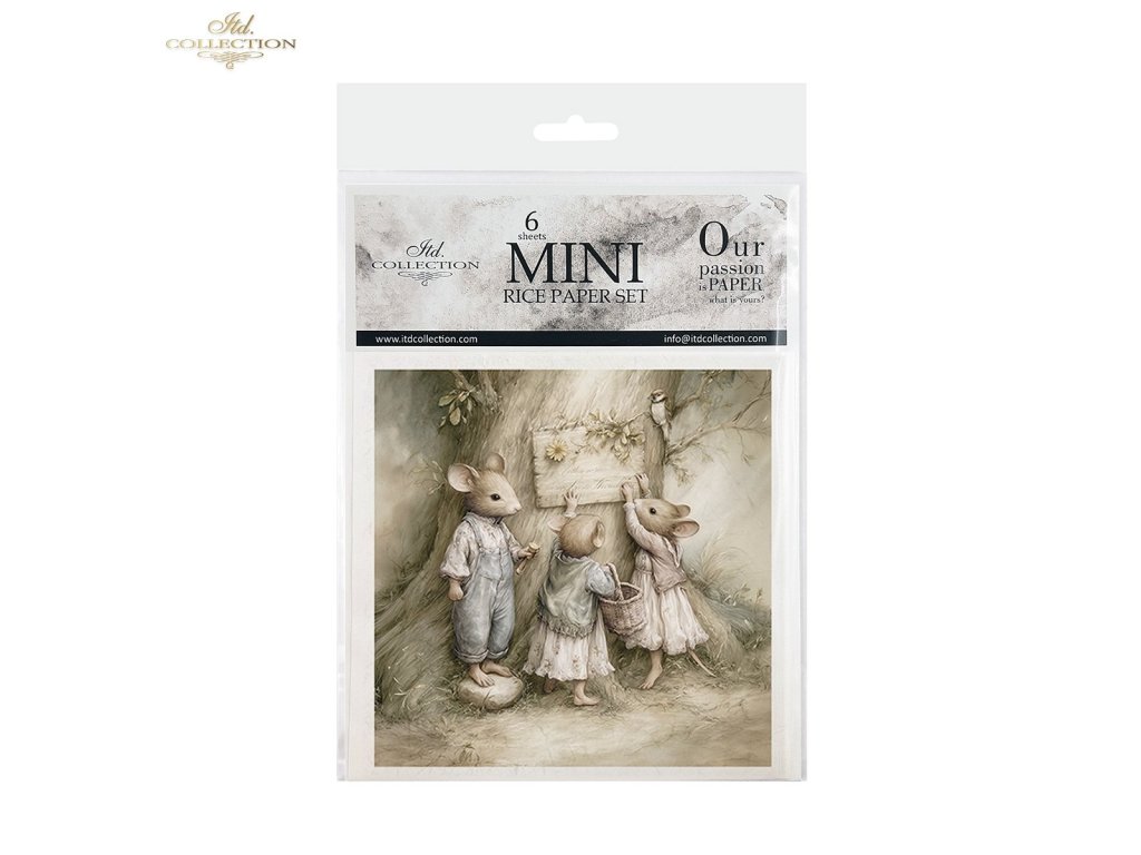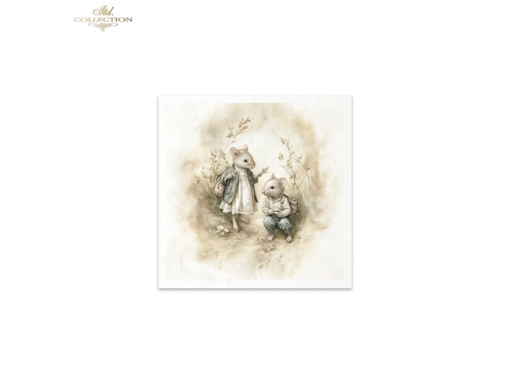 Mini sada rýžového papíru RSM237 - Myši, idyla, akvarel, retro, les, příroda