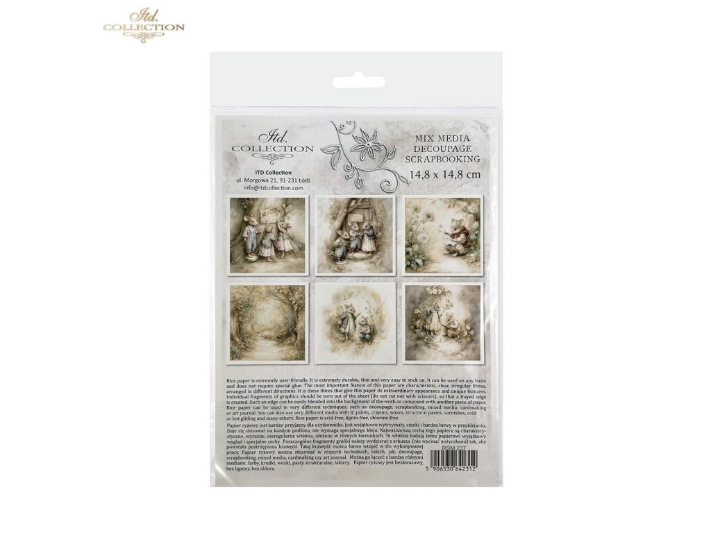 Sada mimořádných rýžových papírů, které lze využít v jakékoli kreativní práci, jako je decoupage, scrapbooking, kombinovaná média, výroba přání a umělecký deník. Sada obsahuje 6 barevných vzorů, které jsou shromážděny v jednom tématickém poli a nejsou k dispozici mimo sadu. Každý list představuje pouze jeden design, což usnadňuje jeho začlenění do již plánované práce. Grafiky jsou velmi užitečné jako hlavní ornamentální téma, které lze začlenit na malé a středně velké předměty, jako jsou hrnky, svíčky, krabičky, krabičky na kapesníky, podšálky, vajíčka, vánoční ozdoby. Všechny grafiky v sadě k sobě ladí barvami a vzory – jsou vhodné při tvorbě předmětů ze sady. Na zadní straně sady najdete miniverze všech grafik, které jsou v sadě. Každý obrázek je umístěn na světlém, nepravidelném pozadí, které je univerzální. Snadno je lze implementovat s jinými grafikami nebo na jakékoli jiné pozadí. Přesvědčte se sami! Přejeme vám skvělou zábavu!