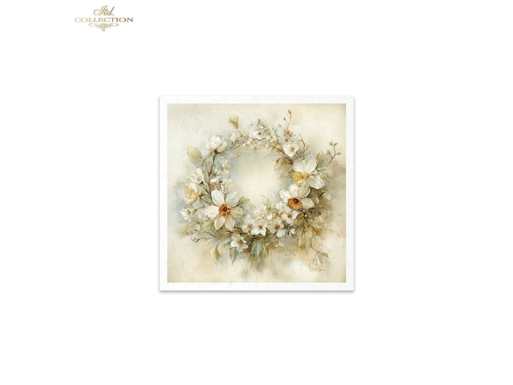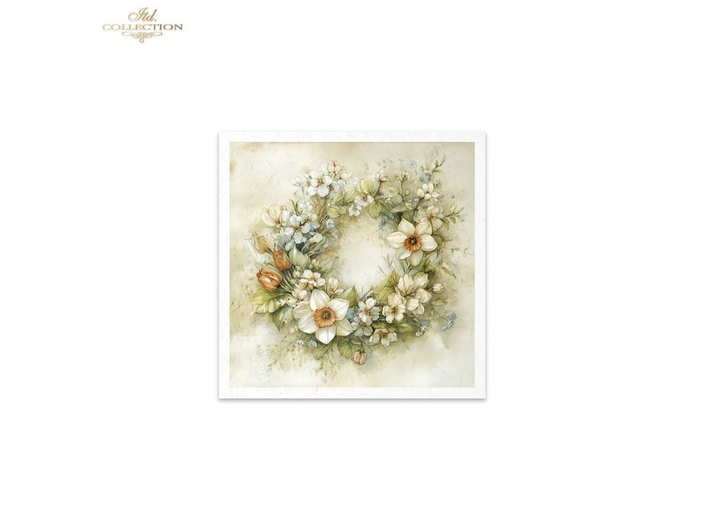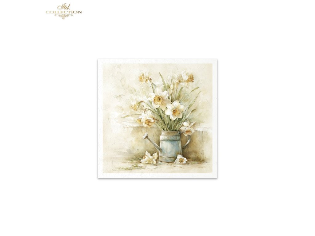 Mini sada rýžového papíru RSM249 - akvarel, narcisy, pastel, jaro, květiny, rustikální, věnce, konev, vintage
