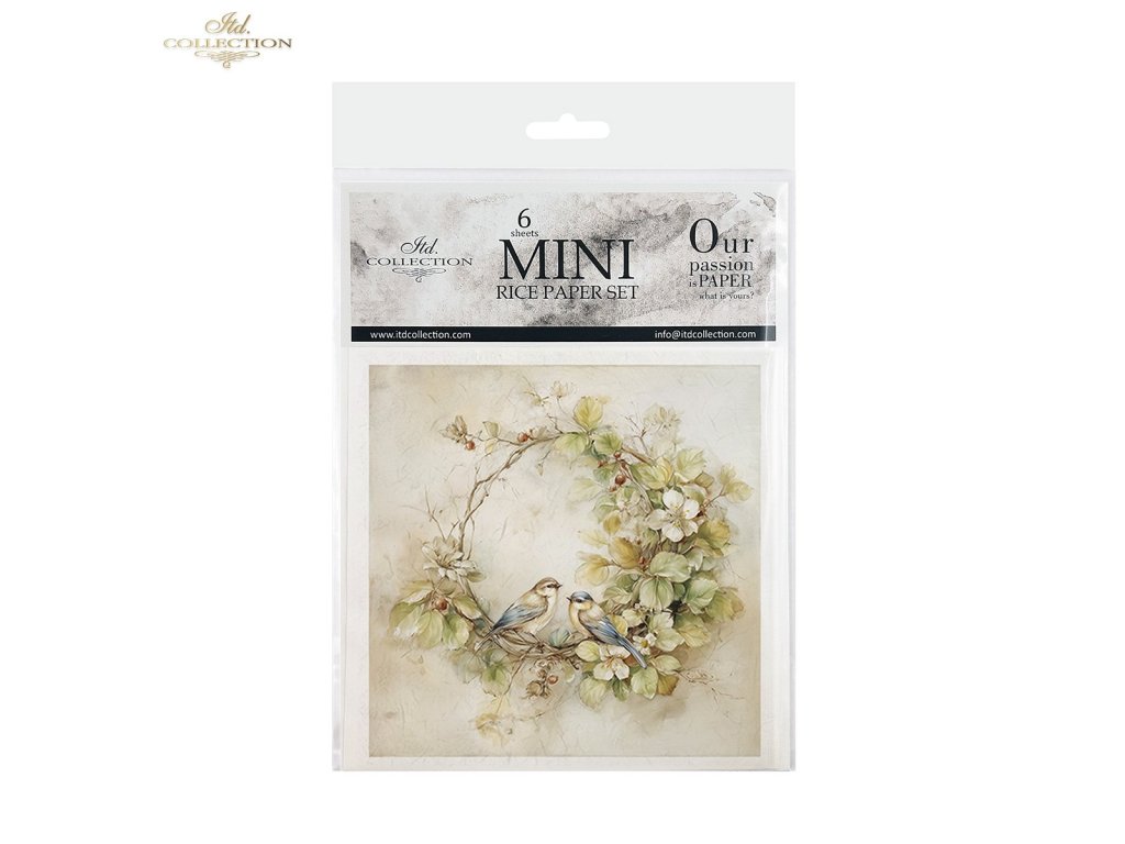 Mini sada rýžového papíru RSM251 - Věnce, květiny, ptáci, akvarel, příroda, pastely, vintage, ilustrace, botanika